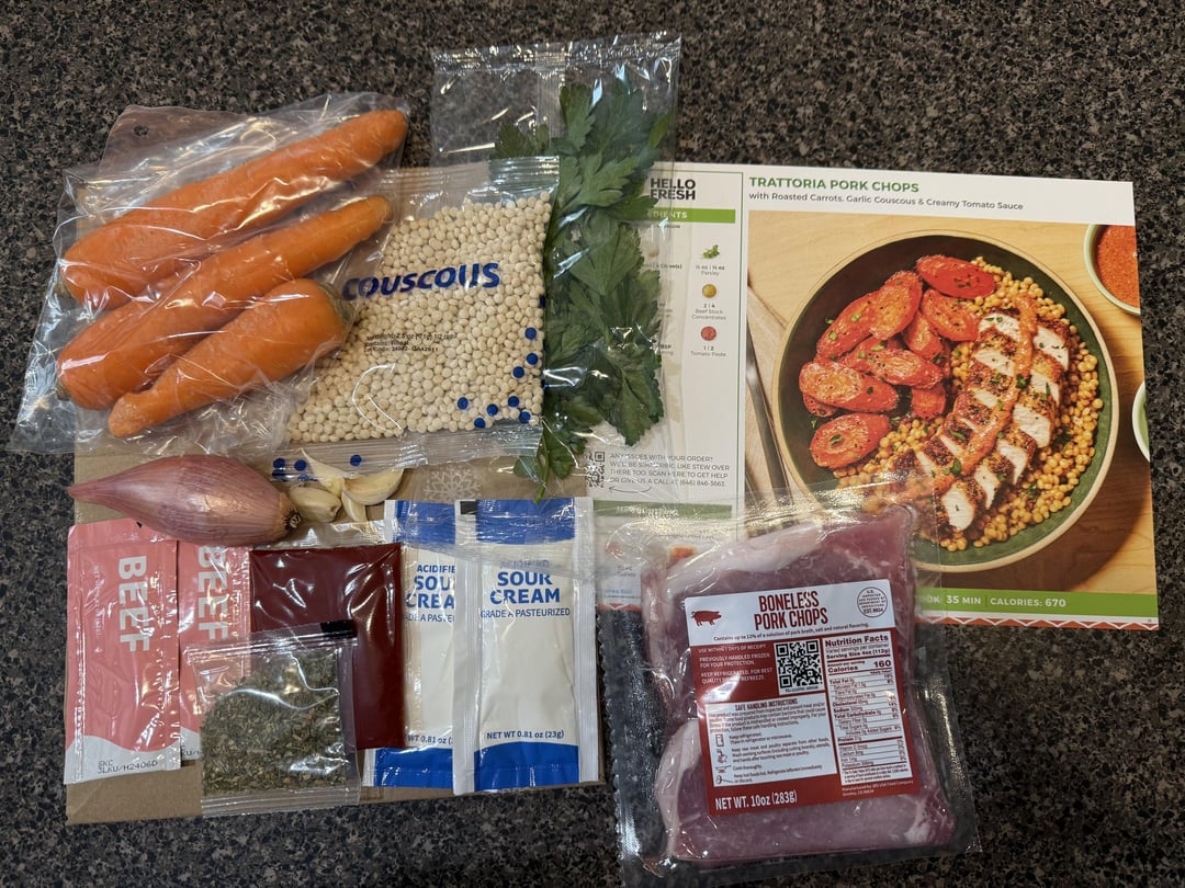 This one was just mehh. In general the pork chops, carrots and couscous were fine but the sauce was meh. It wasn’t anything special and overall tasted like tomatoes but without any other seasonings. Should have used some of the Italian seasoning in it. So if you have this and haven’t made it yet, definitely add seasoning to the sauce!