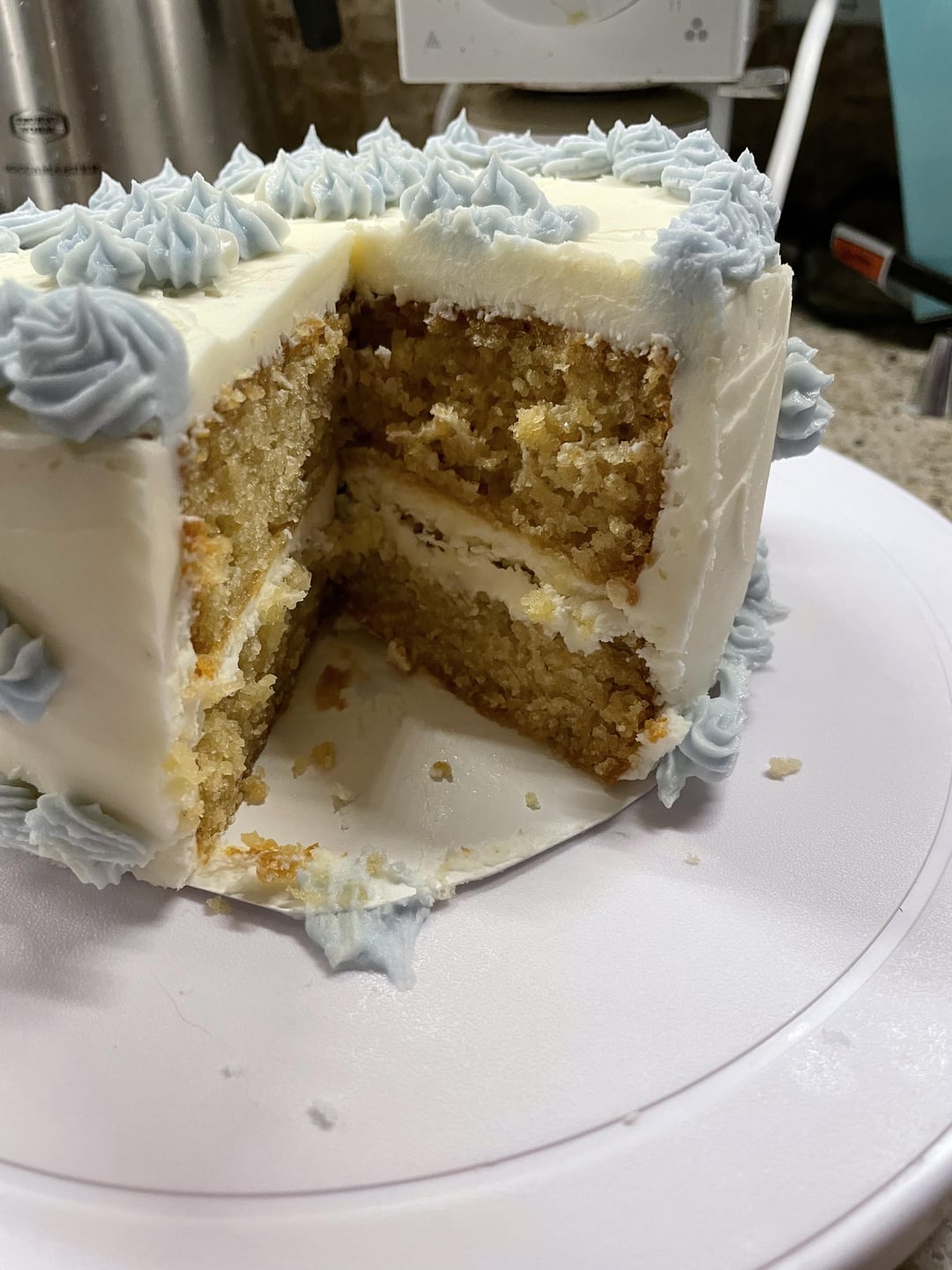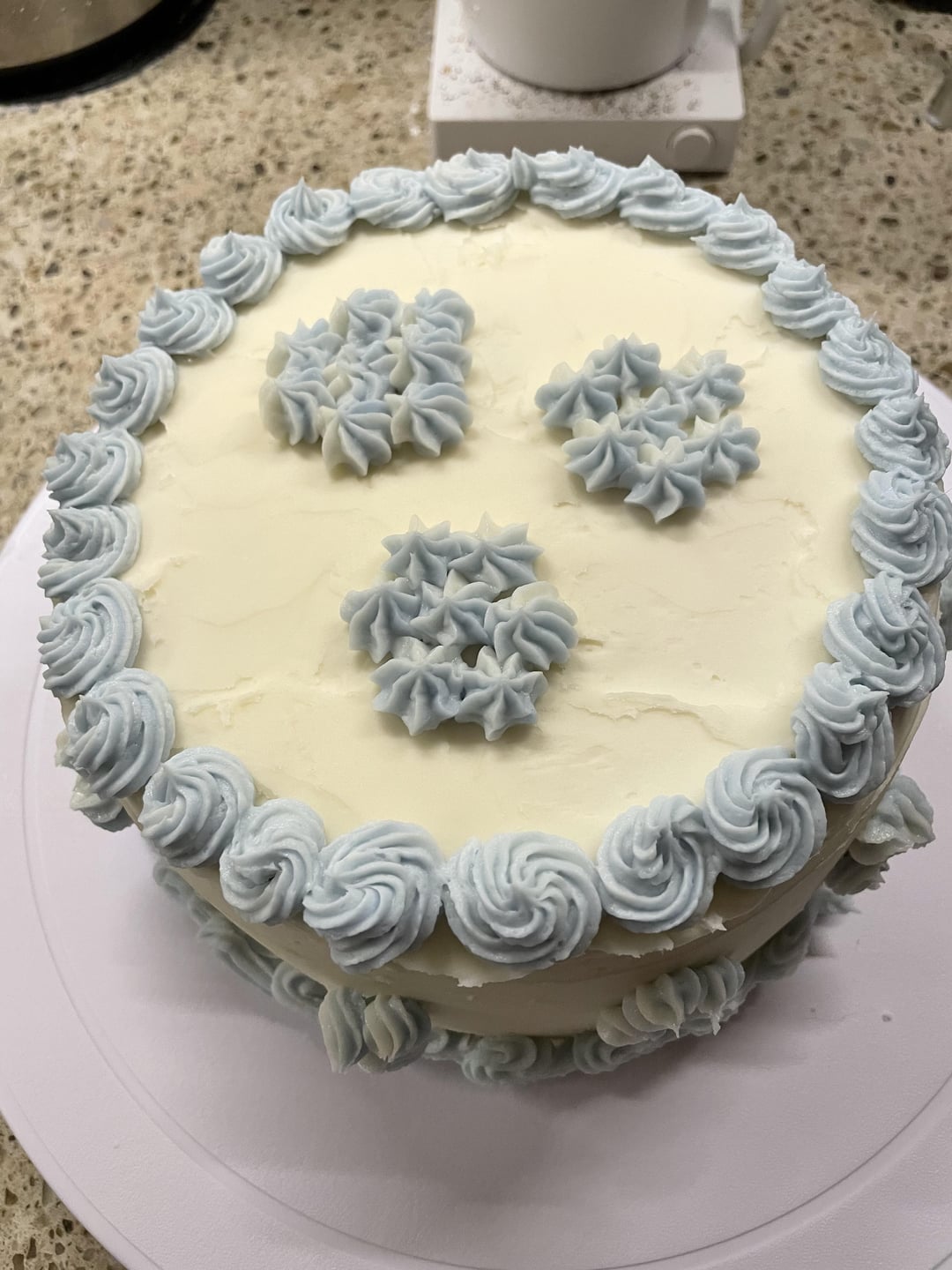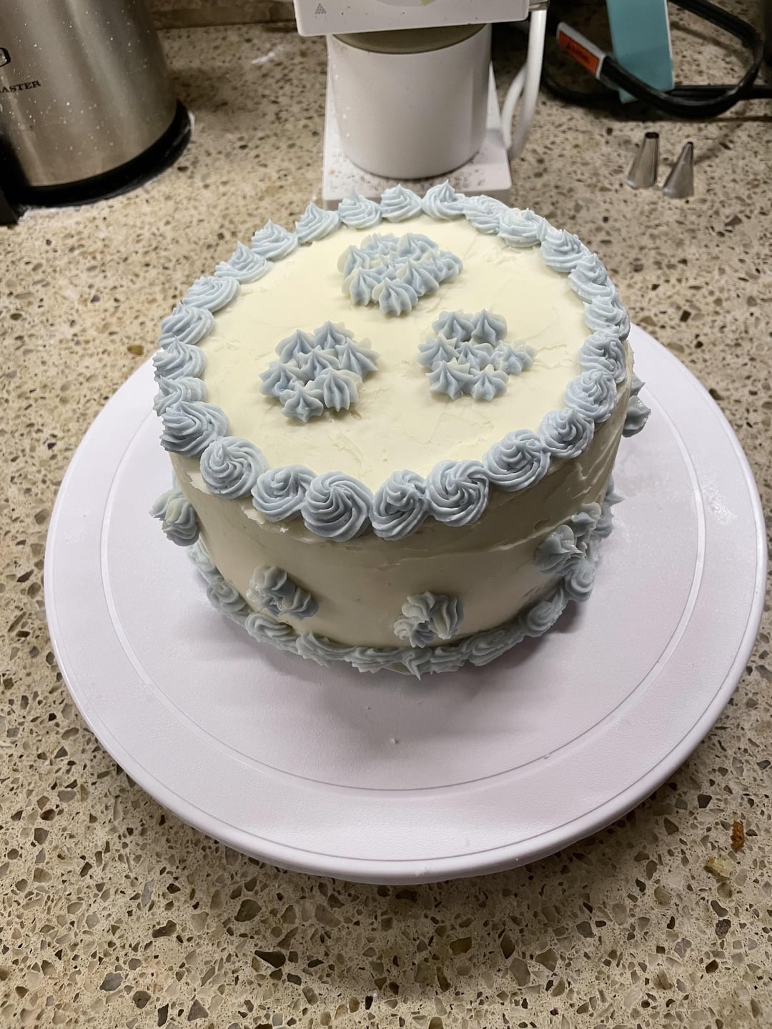 The cake didn’t turn out good at all (dry, dense, cornbread-ish) but it was a fun project so I’m going to keep practicing 😊 I only have a hand mixer so the buttercream was a bit of a challenge!