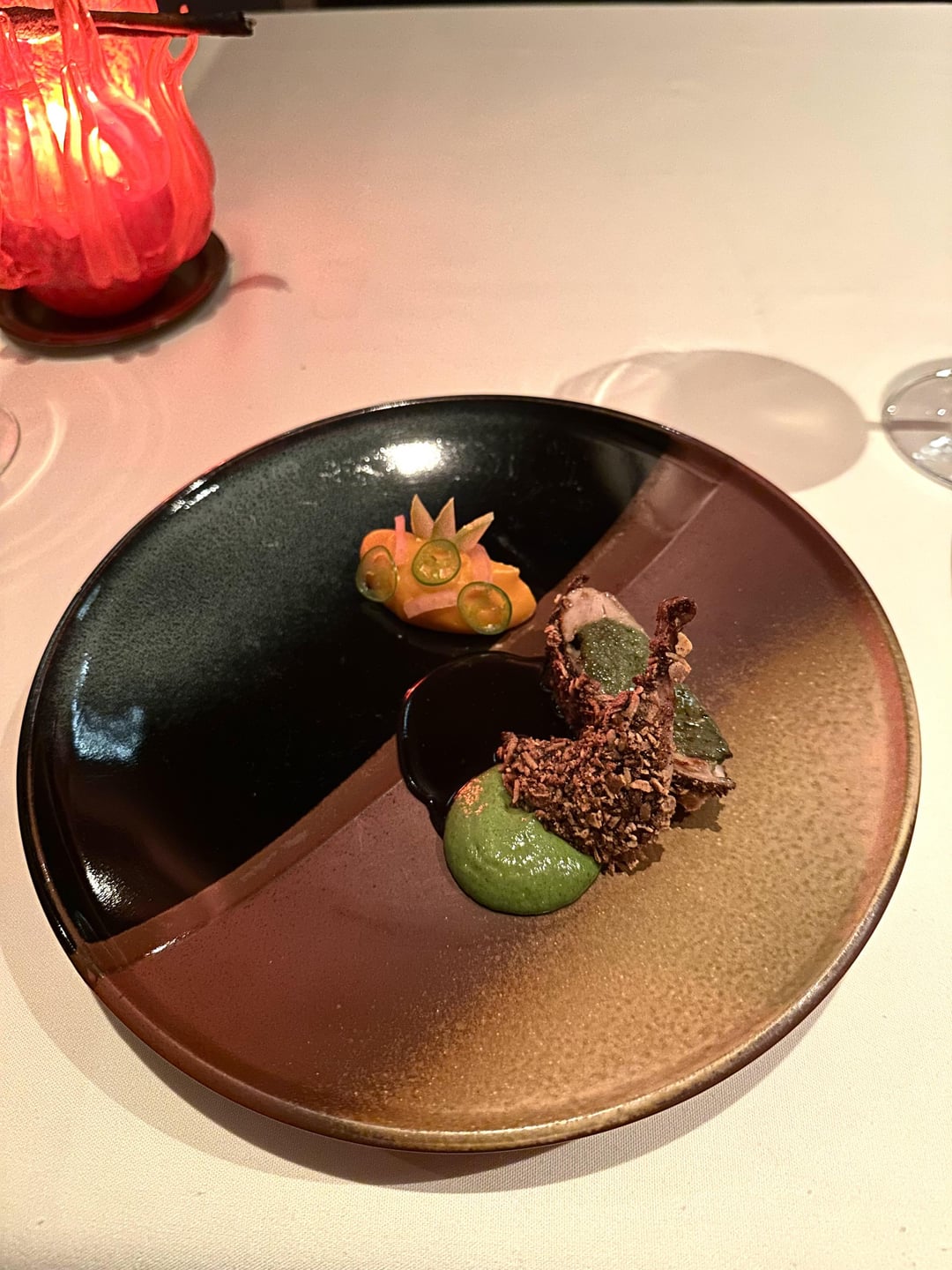 - 16-spice quail from Next (Bobby Flay). So many incredible sauces and textures at play. It was a delight to mix and match elements on the plate.