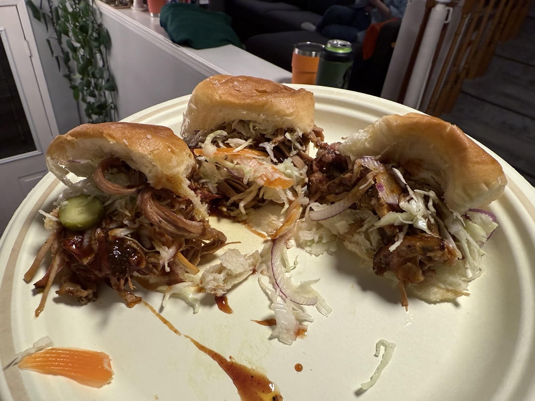 Go Birds – learning more each time thanks to this sub! Pulled Pork on Hawaiian Rolls with coleslaw and Matheson Heater