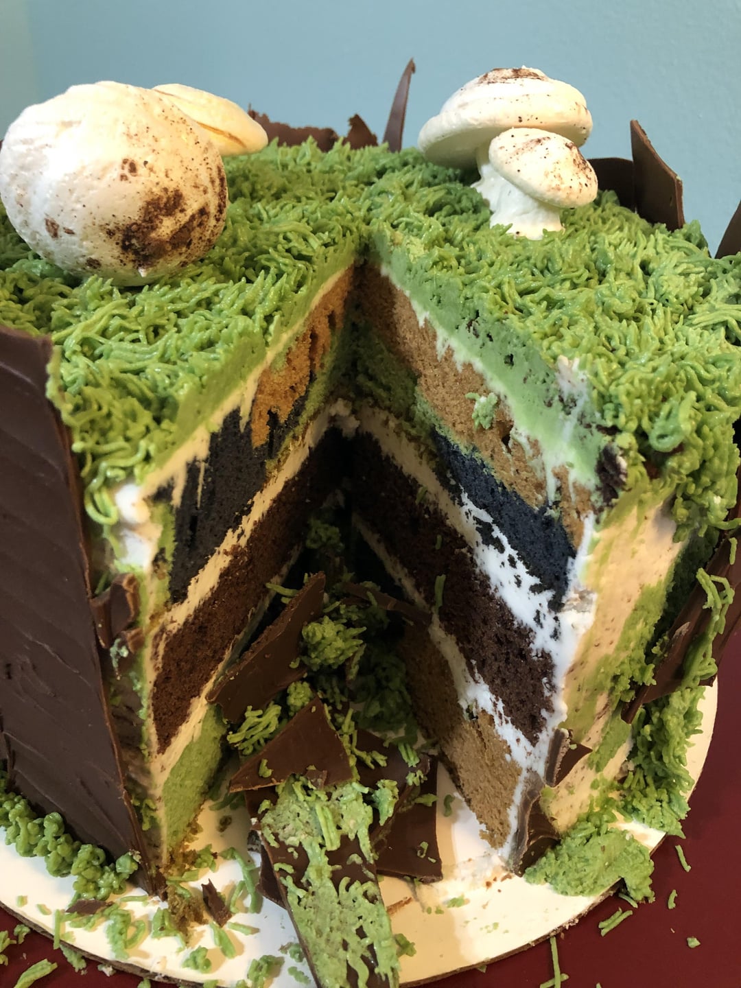 No way! I just made a similar cake last night and was going to post a pic to this sub when I saw yours! How did you make the mushrooms? They’re so cute!