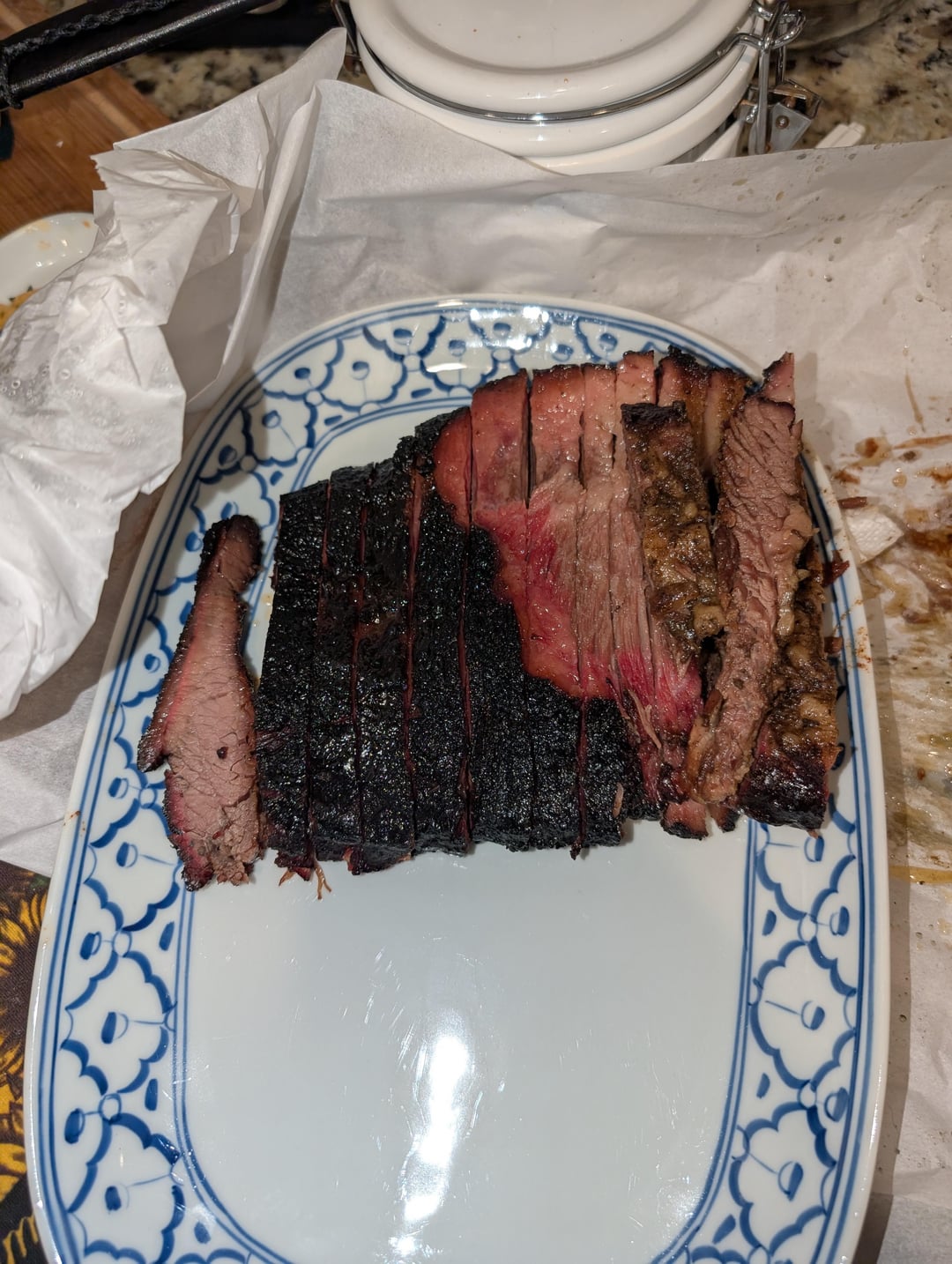 Here is the brisket from this last Sunday. Working on thinly cutting and enjoyed the smoke.