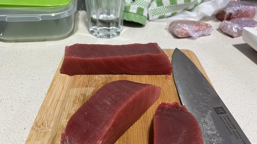 Well, this is my first time making sushi. I saw a really good tuna at the fish market and I went for it.