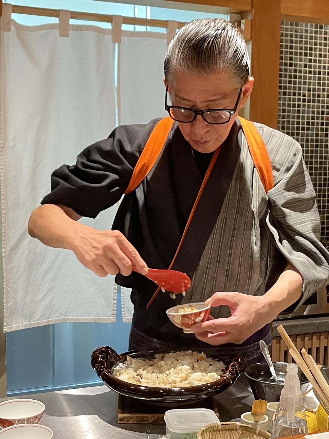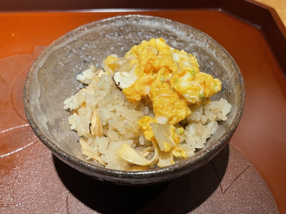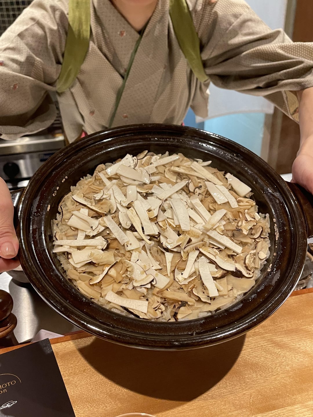 Claypot rice topped with Matsutake mushroom sourced from Shobara city and dabbed with egg sauce for extra flavour.