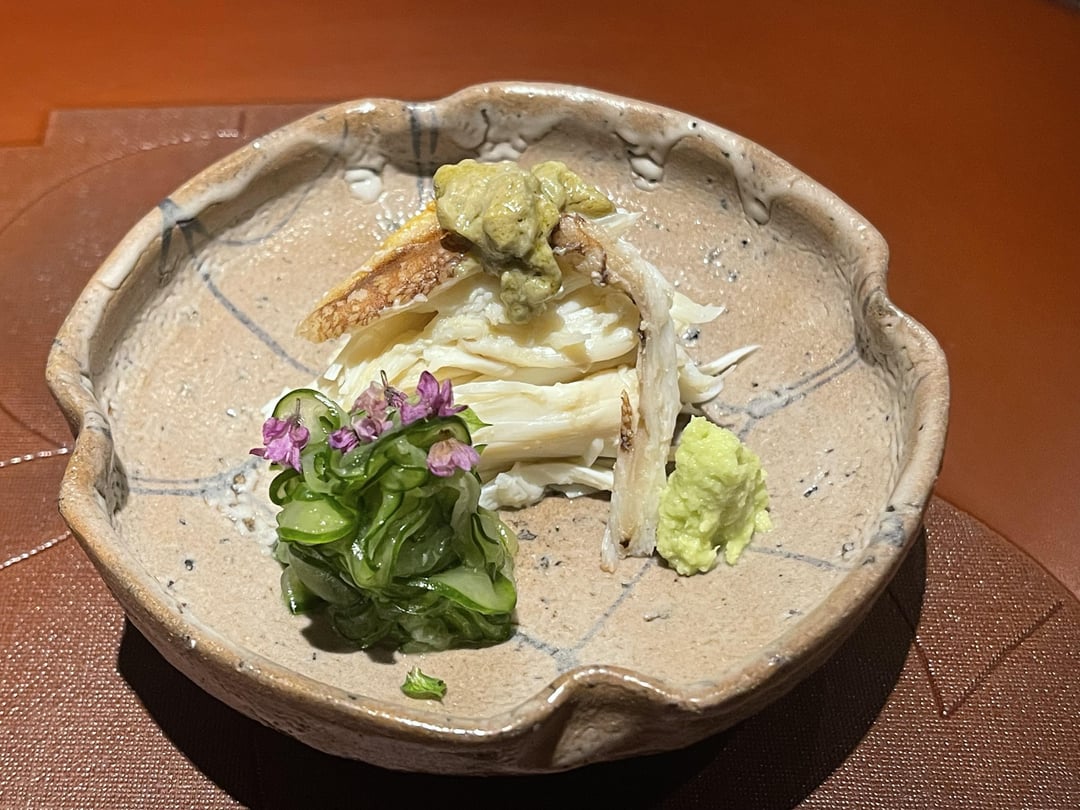 Blue crab from nearby Fukuyama with tosa vinegar and kani miso.