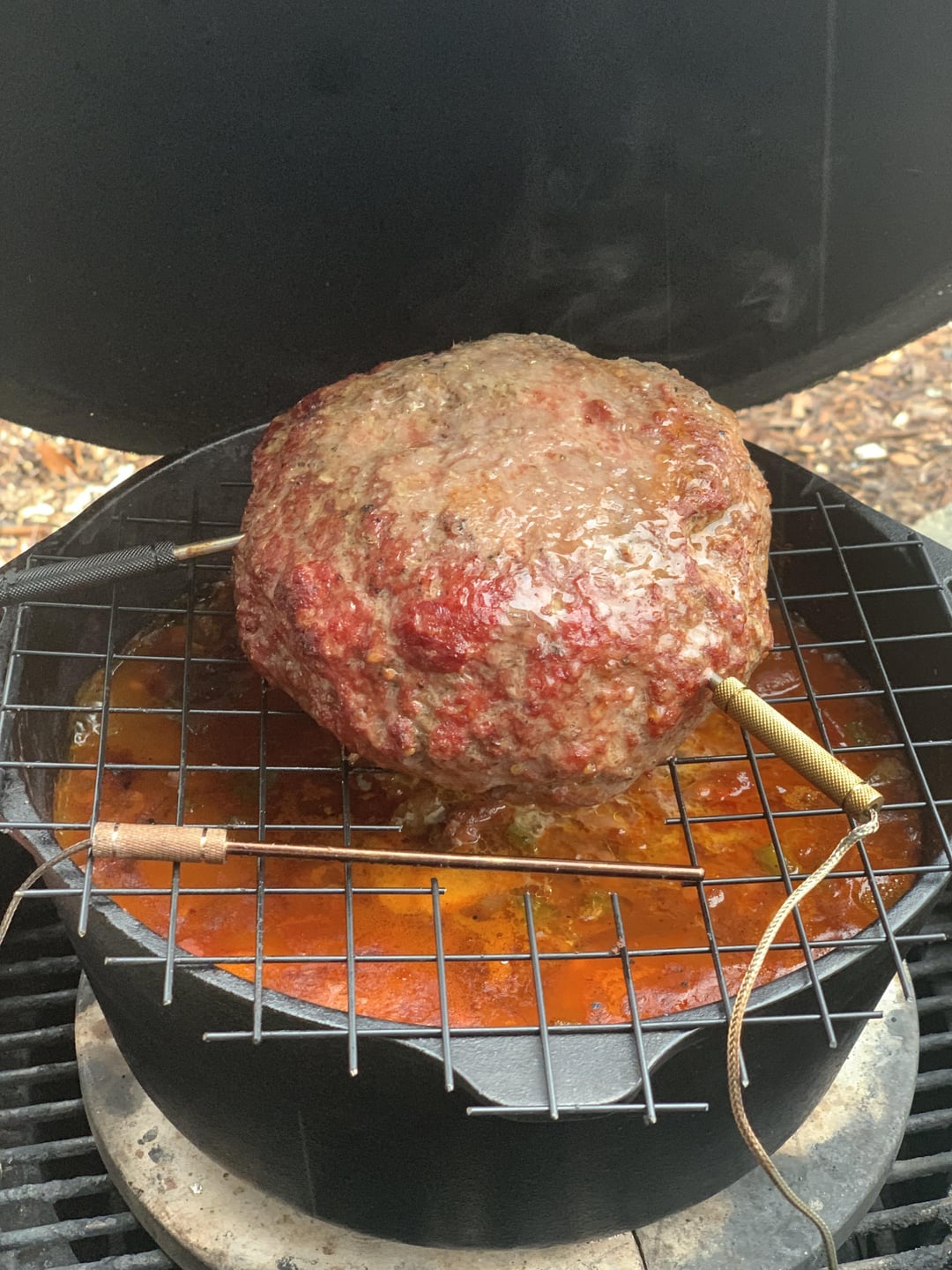 Fire up your KJ to 275 -300. I smoked with pecan and it came out great. Smoke with meata ball over the chili until meata ball hits 150.