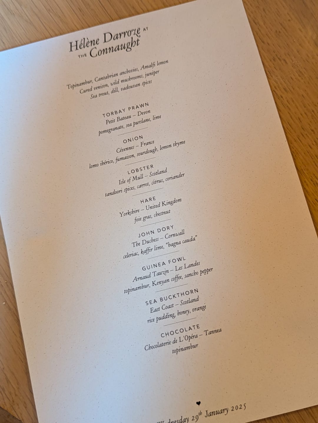 So funny story, we were looking to go somewhere fancy for a pricey but "reasonable" lunch and saw that Helena Darroze had a table for the £125 for 3 courses. This ticked all the boxes but when we turned up the 3 course menu wasn't offered so we sucked it up and went for the full tasting menu. When in Rome and luckily a decent bonus meant we could swallow it. In the end, everything was amazing except the price. I don't think the experience is so much better here to warrant the extra £££ over the 1 stars i have been to but incredible meal