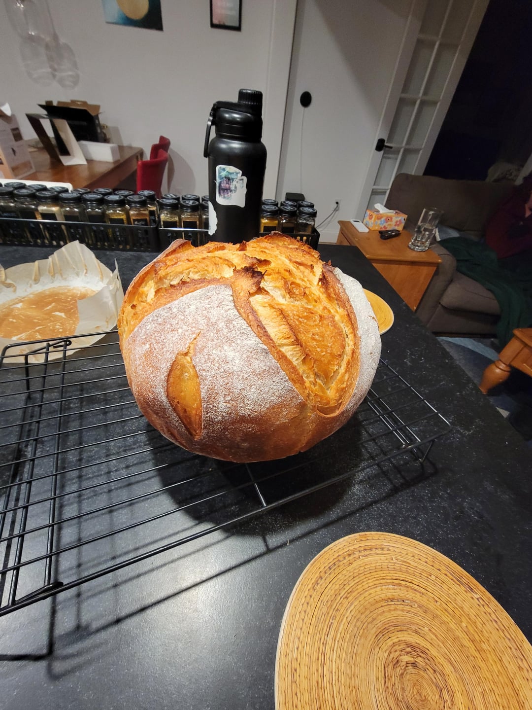 I bake in pyrex thermal casseroles. It’s something comforting about peeking in the oven and seeing the loaf rise. It’s probably nice to have the lid off surprise from a dutch oven.