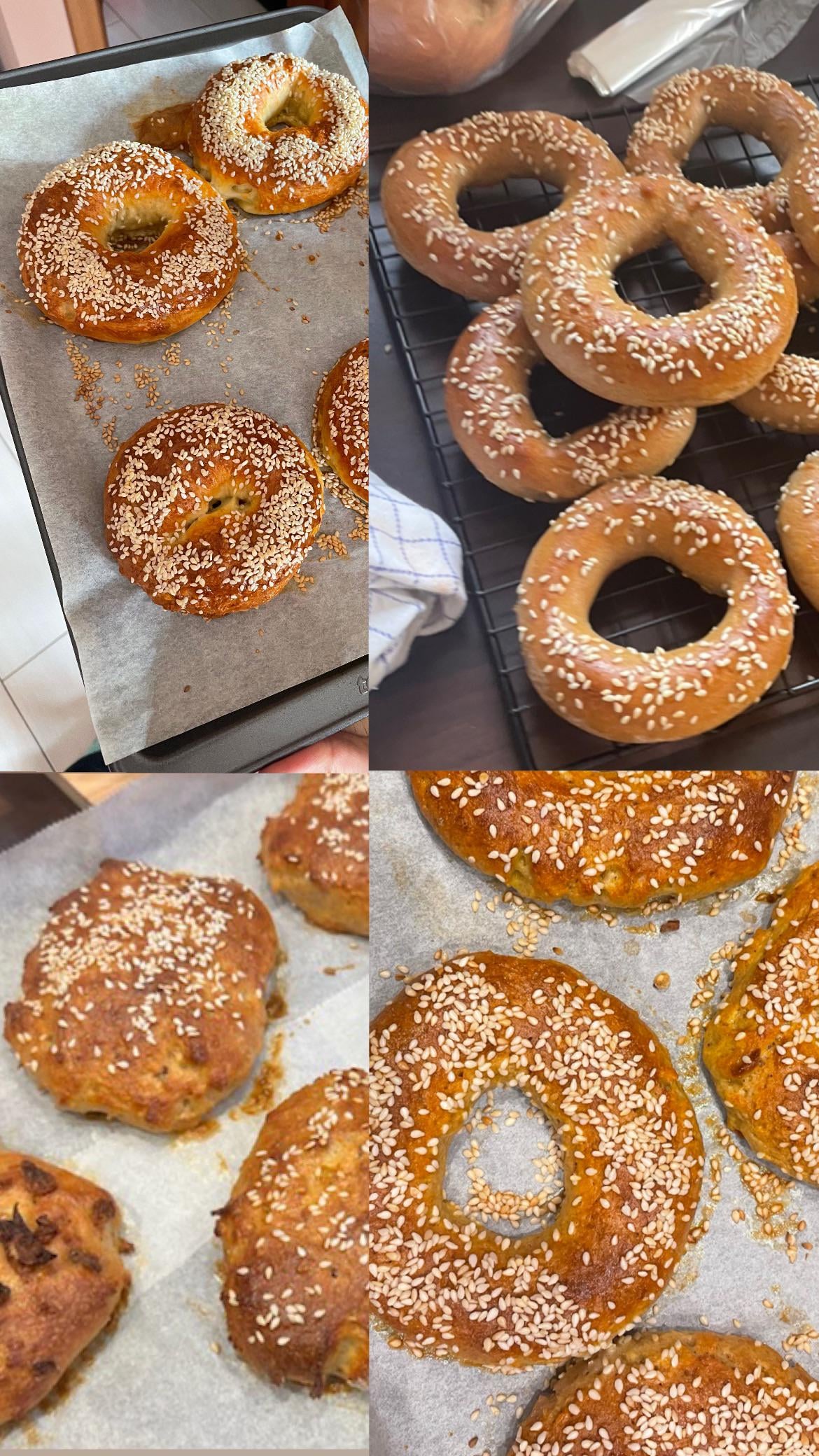 I started with all-purpose flour, then switched for rye flour and the last two tries were to fine-tune the flour yoghurt ratio with adding protein powder
