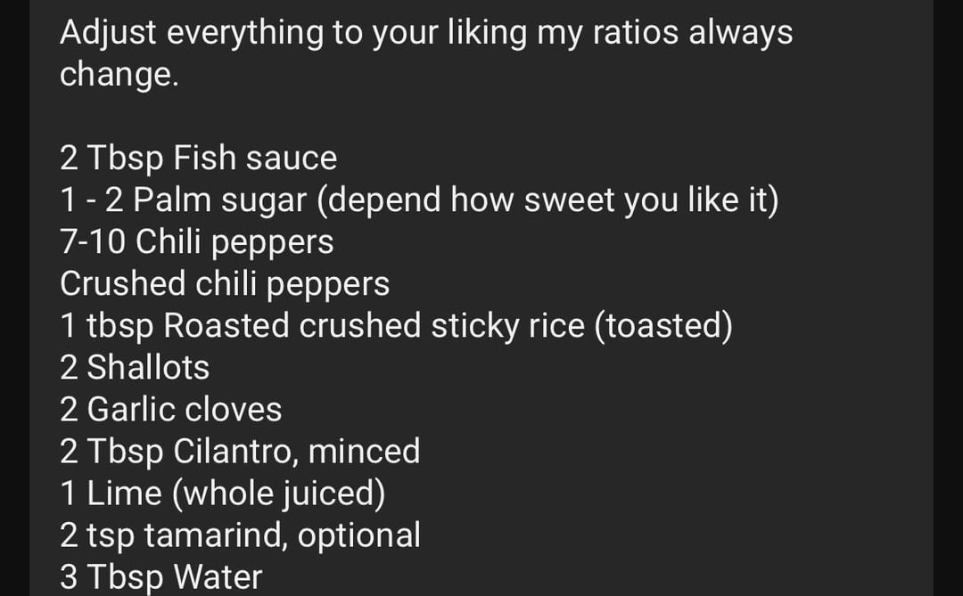 The sauce itself seems like prik nam pla, although there may be some nuance that distinguishes it. This is a S tier condiment that you should familiarize yourself with if you aren’t.