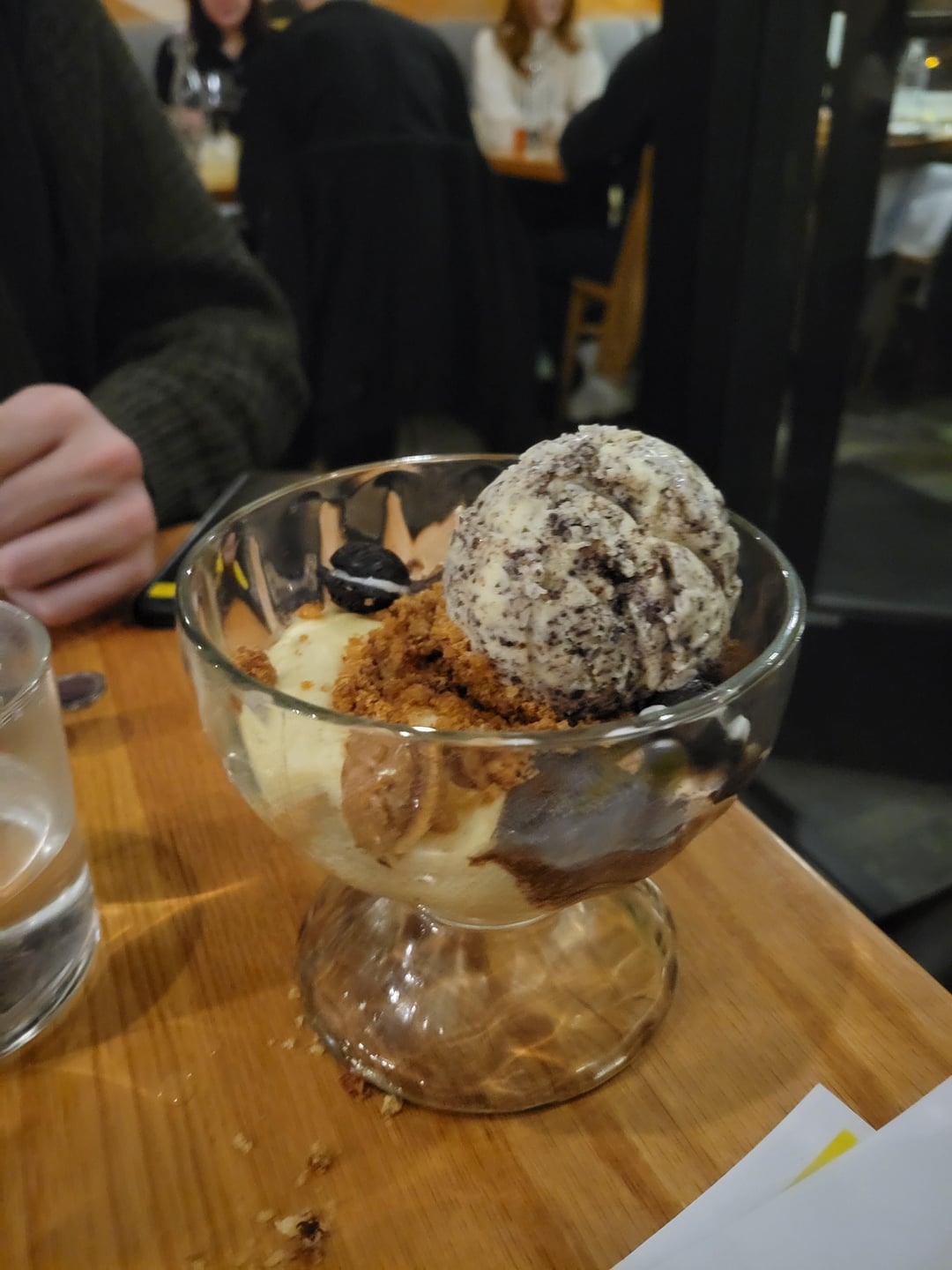 The two desserts were the cookies and cream microwave cake and the camera ice cream. It said choice of dessert on the menu but we were not offered the toffee apple pie, a little disappointing as I would have preferred that. Regardless the cake was my preference, as I love the contrast of a warm cake with cold ice cream on top. The cajeta was fine but didn't really blow me away. The strawberries were a nice touch.