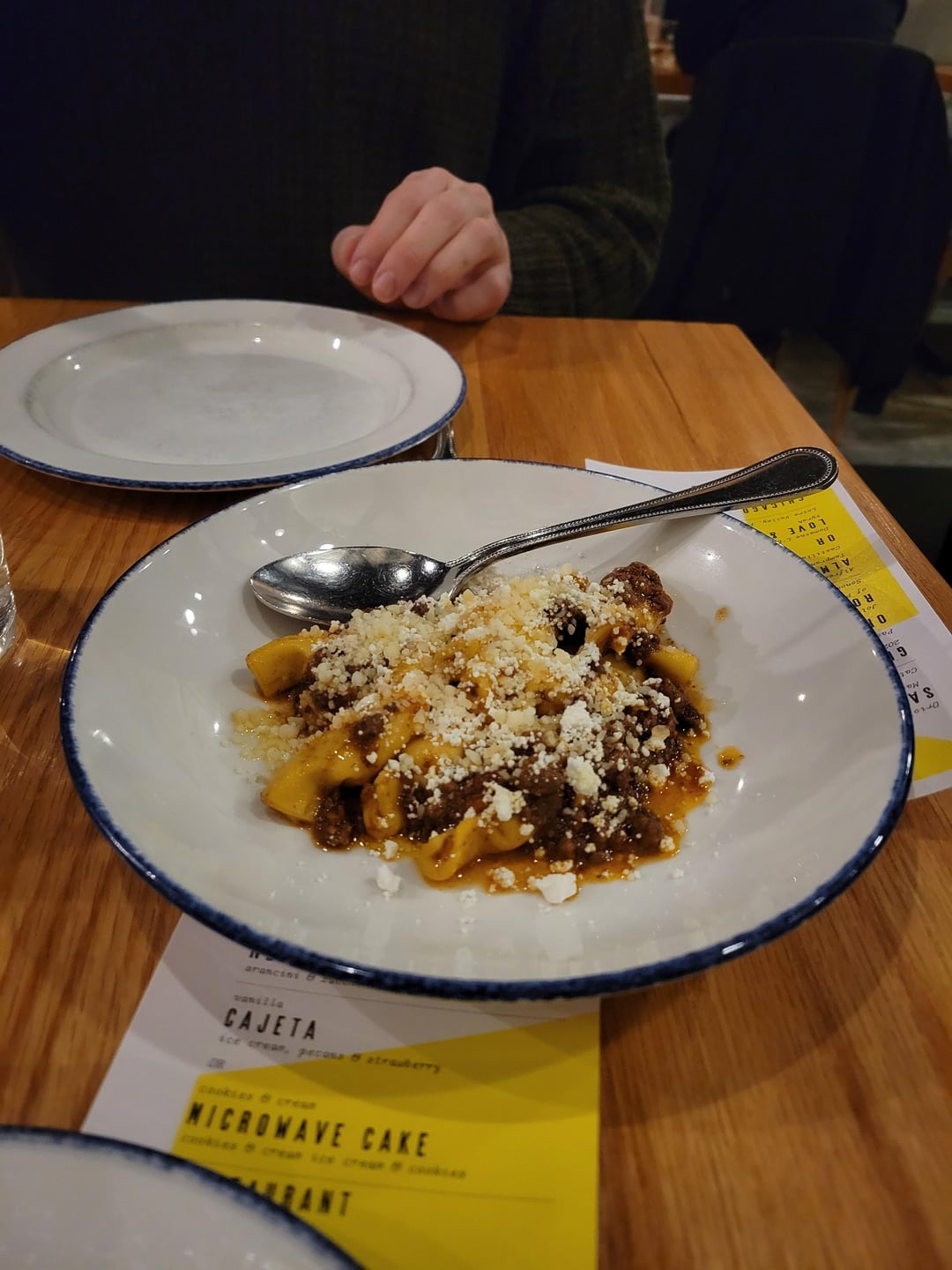 Next was probably my second favorite, the carmelle. Upon first bite it seemed to have a rather subdued flavor, but quickly it became a very rich and savory dish. It had a mouth watering permesan filling and the beef and pork sauce tied it all together so well.