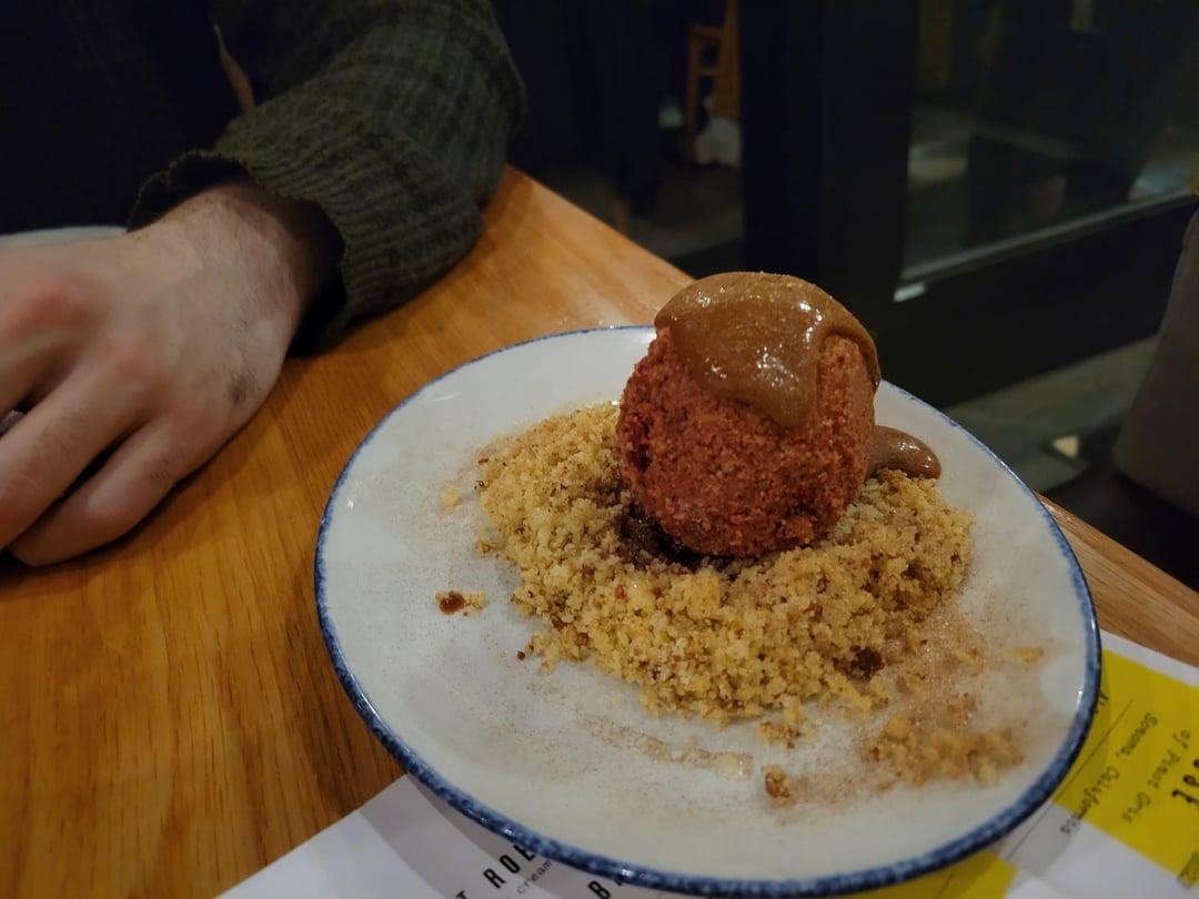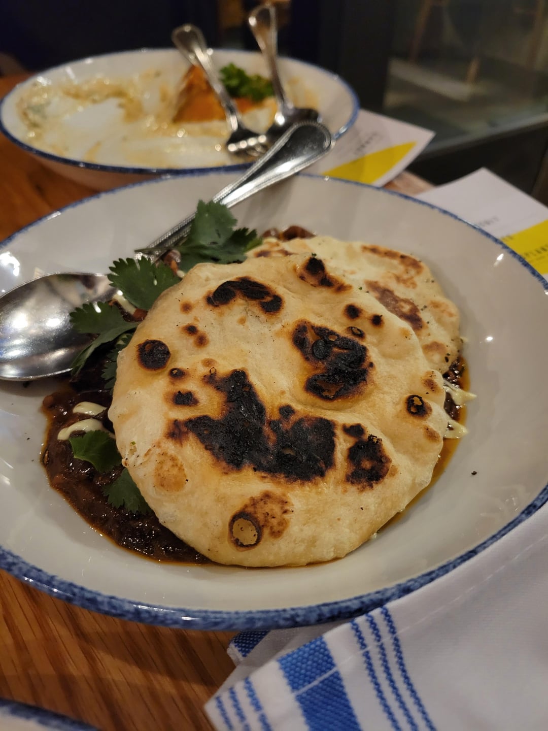 After this we got the Japanese eggplant. I am allergic to cashews but they served the dish without them and it was probably my favorite thing we got. The pita was slightly seasoned and warm, the eggplant was unbelievably tender ans the bits of pork shined through for just a bit of umami taste. The sauce was sweet and reminiscent of a gochujang but not as thick. There might have been a bit of wine in it judging by the slight acidity but it was divine.