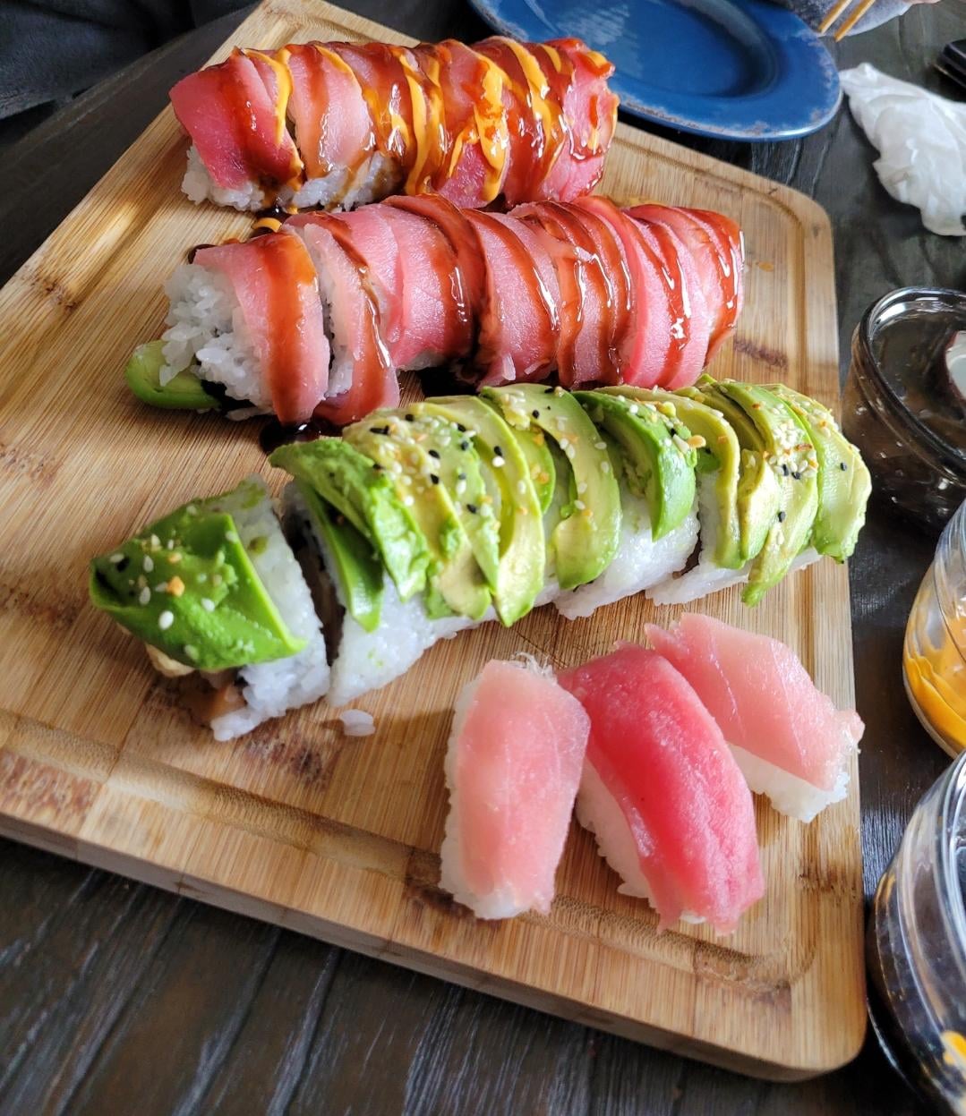 My wife and I made some sushi at home. They were way too big and not very pretty but I think it's not bad for a first time. We will definitely be doing this on a regular basis.