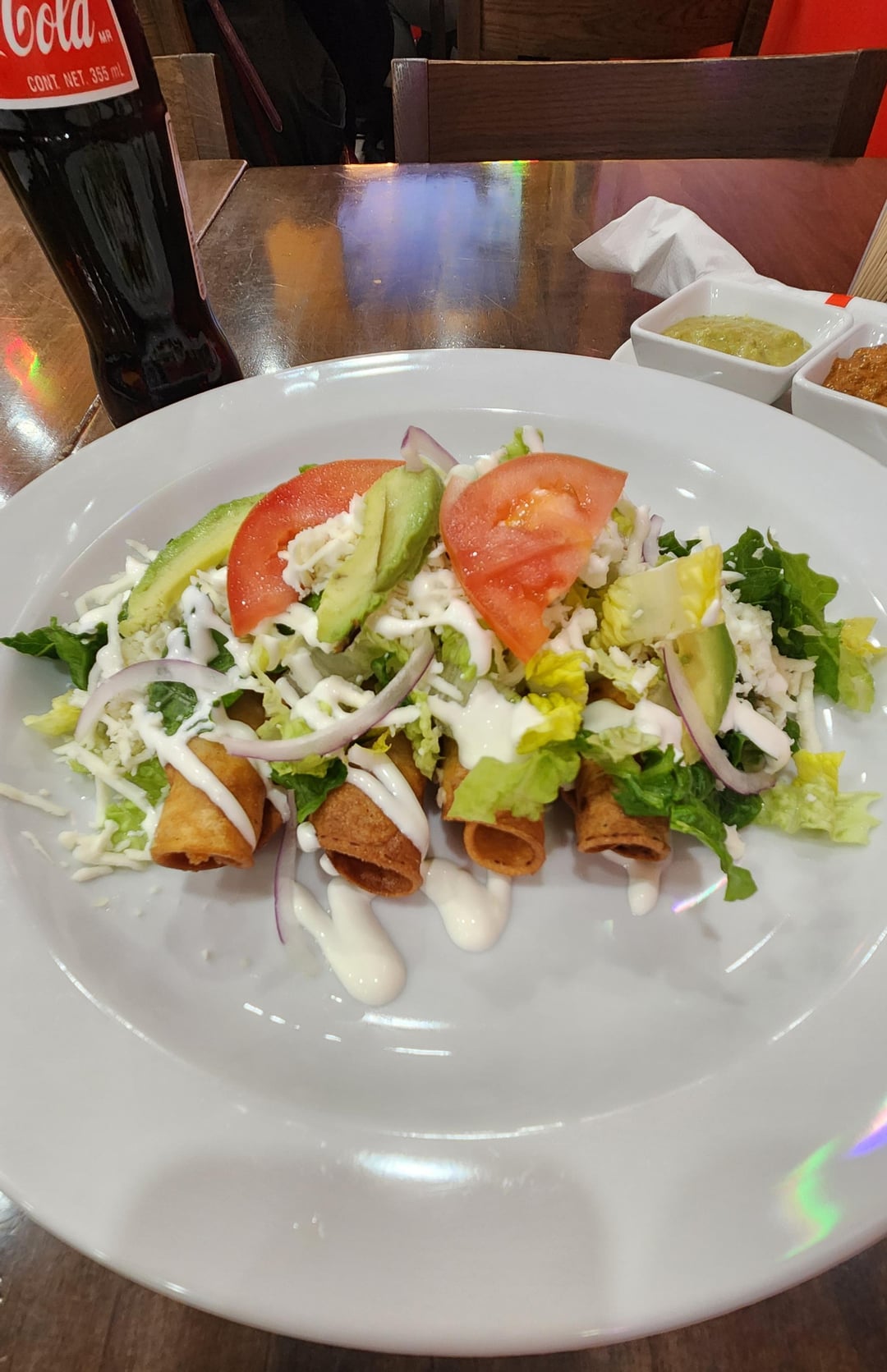 Let's start off with the chicken flautas they were fried to perfection wasn't burnt and had just the right amount of chicken. The hot sauce was definitely hot and addictive.