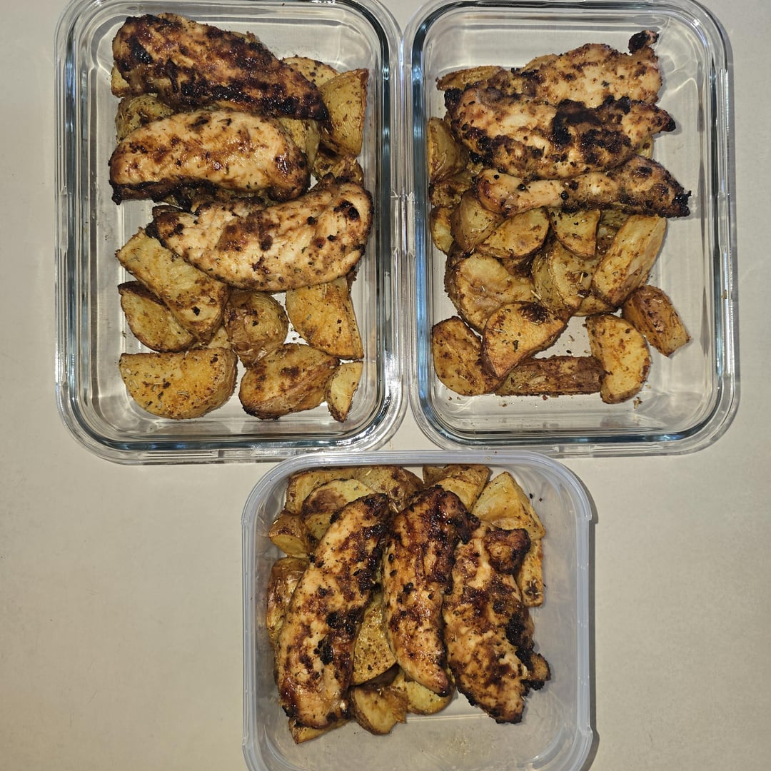 Chicken Tenders with Roast Potates: Chicken tenderloins, spud lites, garlic powder, rosemary, paprika, onion powder