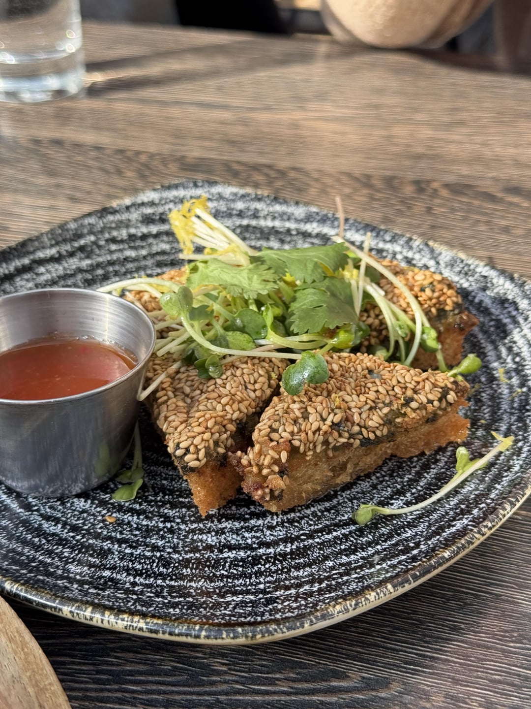 3. Spicy Fried Chicken Sandwich and shrimp toast. Both are good but I don’t have a ton to say about them. Chicken Sando is pretty standard. Shrimp toast is unique with the amount of scallion and sesame seeds – I’d like to see the shrimp shine a bit more, but it’s still enjoyable.