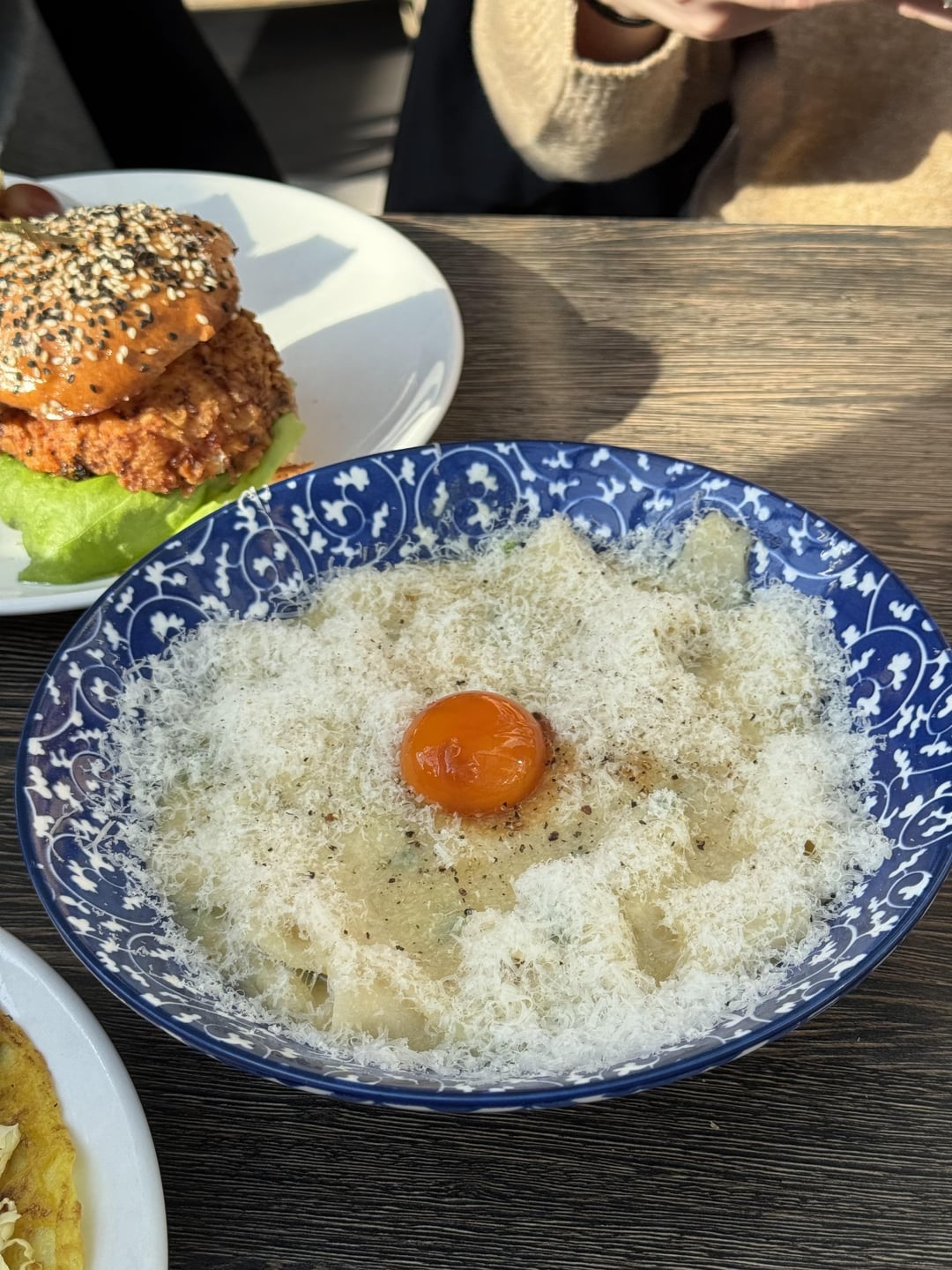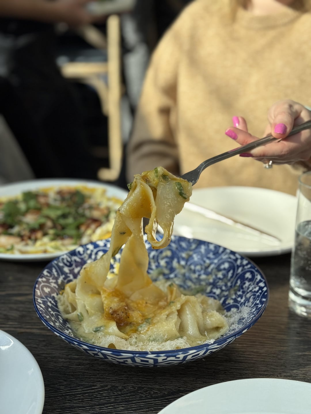 My other favorite dish here is the scallion garlic noodles – the delicate combo of Parmesan and garlic with a soy sauce egg, scallion, and the bouncy noodles sings when you mix it all together.