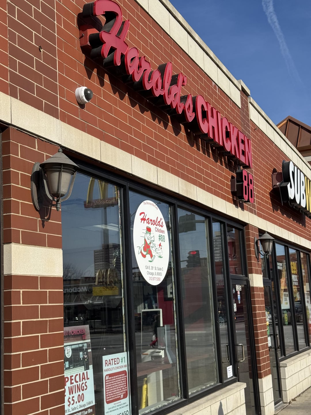 6. Harold’s Chicken #88: 1/4 dark combo with mild, fried fresh and piping hot; Great fried chicken.