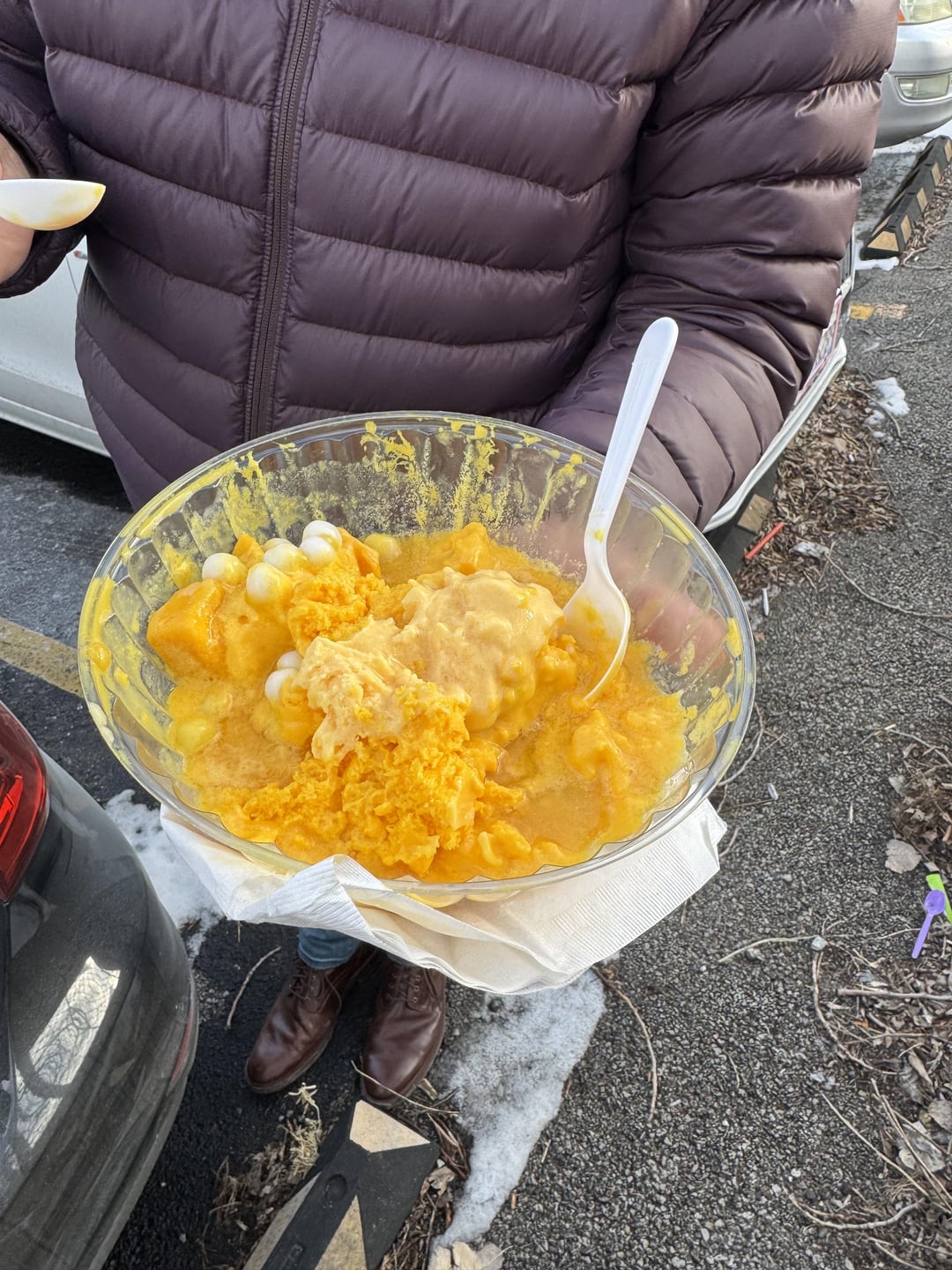 8. Mango Mango: Put our names in for QXY and came here for a palate cleanse while waiting. Mango ice partially eaten there, rest shown eaten back at car after QXY after pouring a few ounces of rum on top. Highly recommend (even better with the rum.) Crème brûlée pastry was an add on and tasty but mango ice was the star.