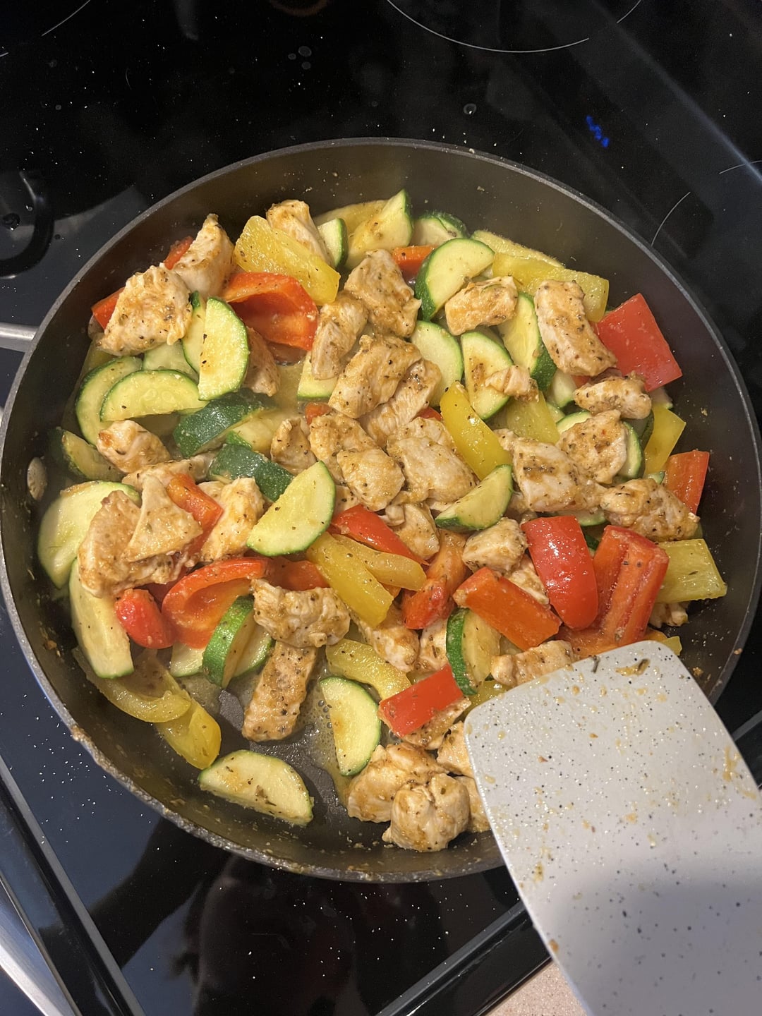 Everything seasoned with onion powder, garlic powder, italian seasoning, and cajun seasoning. Served over jasmine rice.