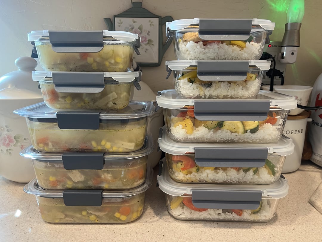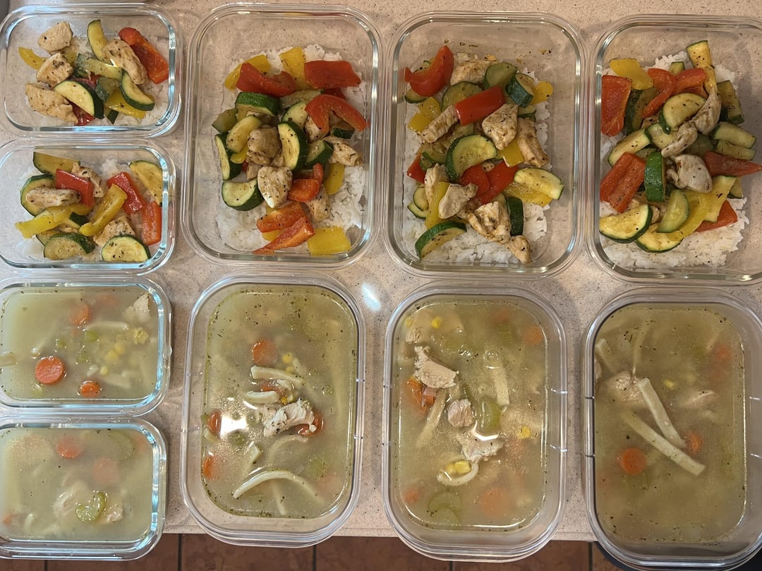 Hi guys! These are our preps for the rest of the week. Fiancé has meals for his Thursday, Friday, Saturday shifts. Mine are for Thursday and Friday only 🙂 He works 10-12 hour shifts so I try to always do 2 meals as his lunch and dinner while he’s there.