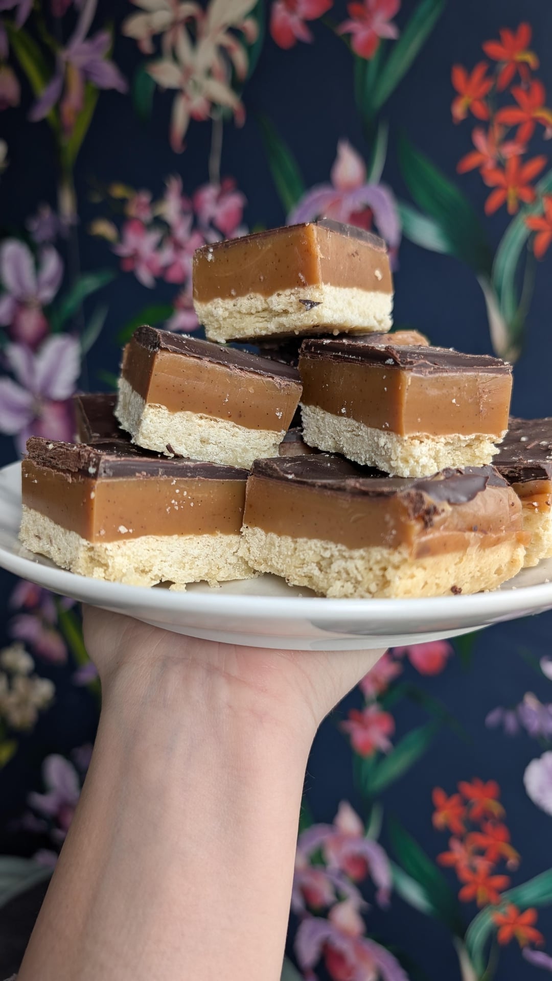 My Gramma once told me that these were invented by Scottish War Brides like herself. After arriving in North America they marveled at the grocery stores and how readily available things like chocolate and condensed milk were. These squares were developed from their basic 4 ingredient shortbread in celebration of their new found abundance and how they were living like Millionaires