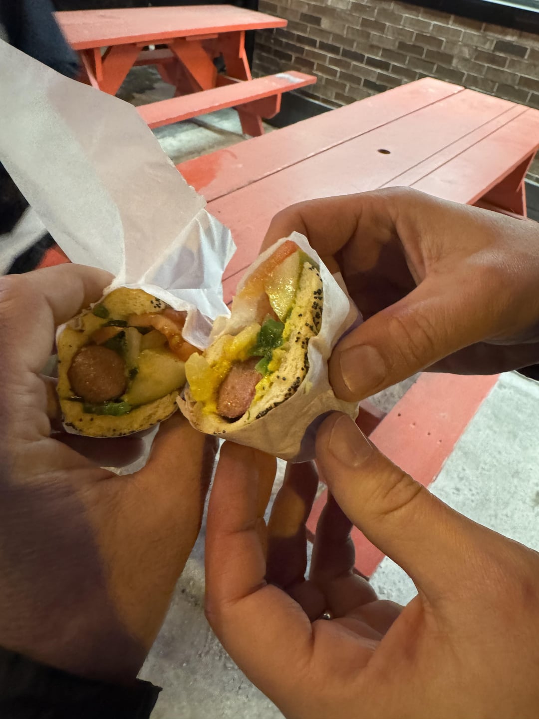 11: The Wiener Circle: Charred Chicago style. Wonderful. Shake machine was not up and running which was good in this case. Need to return. All 4 of us split 1 dog.