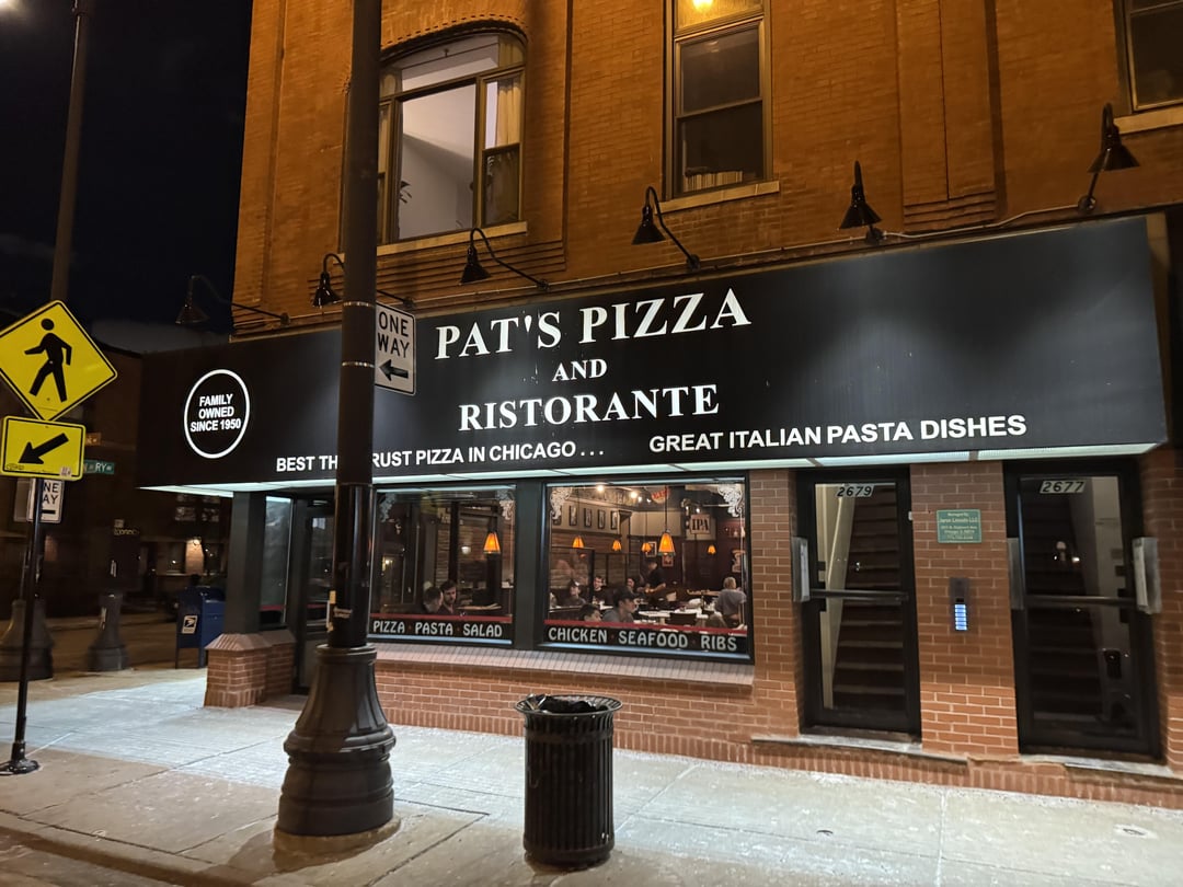 16. Pats pizza and Ristorante on Lincoln: tried to get take out from Pizz’amici but there was a 90 min wait. Drove a bit out of the way to grab a tavern style here. It was great! Gradually finished over the next few hours while playing Euchre and sharing some bottles back in the room. Sorry not a great pic of the pizza. Sausage, mushroom, onion tavern style.