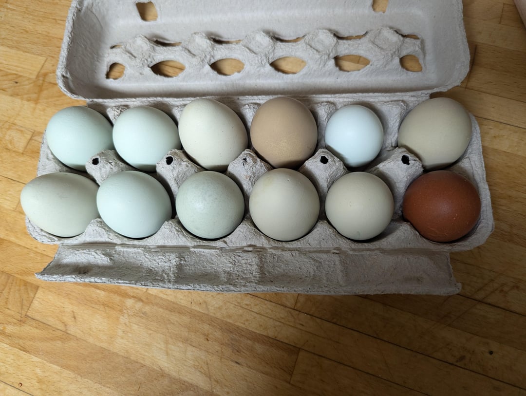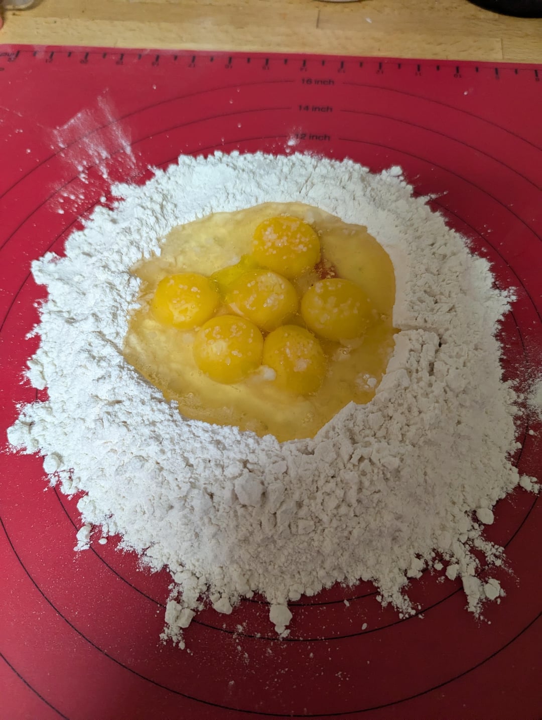 I used 400 grams of all purpose flour (plus extra for dusting), four whole large eggs and two egg yolks (came to ~230 grams whole egg and ~25 g egg yolk) around 1 tsp of course sea salt, 1/4 tsp of extra virgin olive oil, 1/2 tsp of water. Kneaded for ~10 minutes, 35 minute rest before rolling out to sheets and cutting. Rolled to 4 on my machine (should have gone to three but oh well, still tastes great)