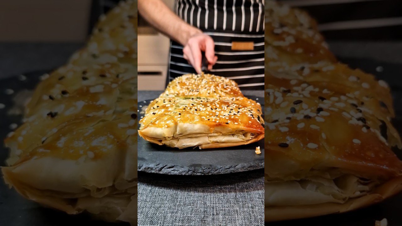 Take the 1st layer of dough and grease it with a small amount of olive oil. Put the 2nd layer on top and also grease it with olive oil. Put the 3rd layer and put the ricotta and spinach mixture on it, put the salmon on top. Roll the dough into a roll. Brush the top with egg yolk and sprinkle with sesame seeds.