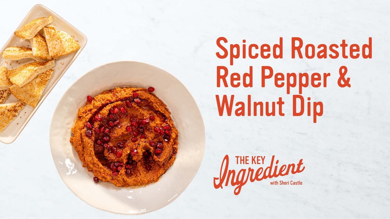 Sheri puts a twist on classic muhammara, a brick-red Middle Eastern dip full of aromatic spices and laced with tangy pomegranate syrup.