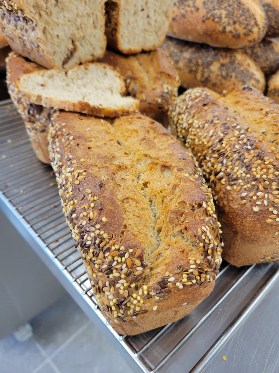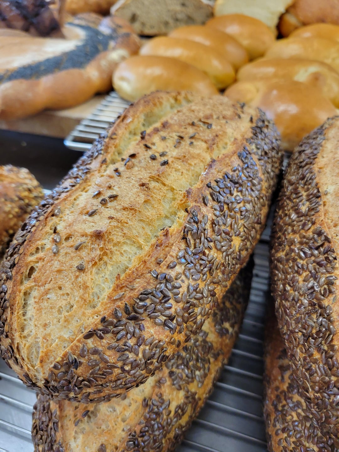 Deux questions: tu travailles exclusivement tes pains au levain? Peux-tu partager ta recette de baguette traditionnelle? Bonus comment on fait pour faire tenir des graines ou autre sur la croûte du pain? (coucou de Belgique)