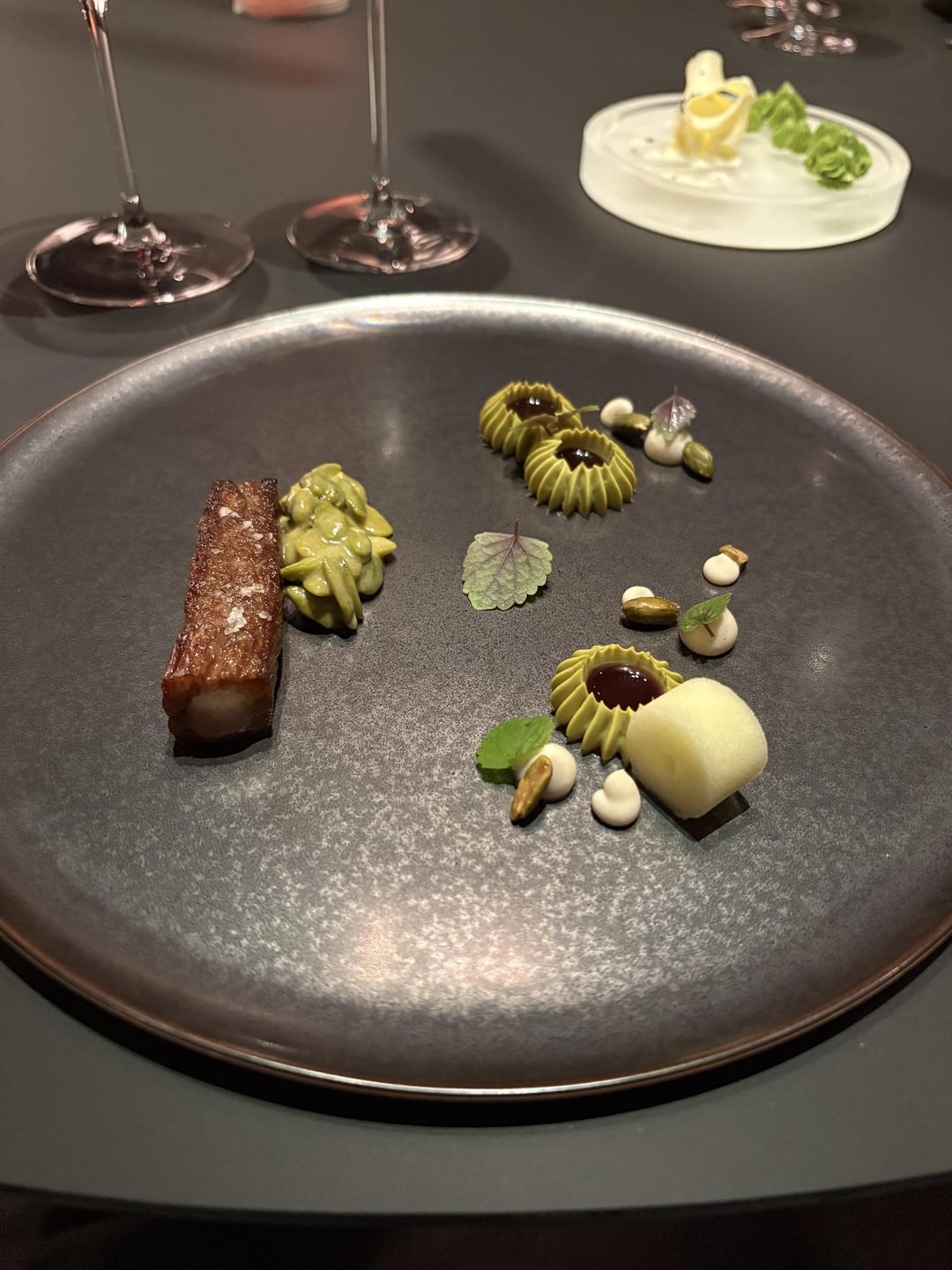 Wine: 10/10. Each of the wines were wonderful, which is to be expected. One of my personal favs was a Riesling that had the nose of gasoline (I love the smell of gasoline) but tasted absolutely like a quintessential Riesling. Other favs were this GSM with Nebbiolo blend from Mexico which was just outstanding. The somm at our table was amazing and so knowledgeable about the wines (that gasoline smell came from the fermentation apparently). The pours were generous, but not too much (if you’ve done wine pairings, you could leave properly wasted lol).