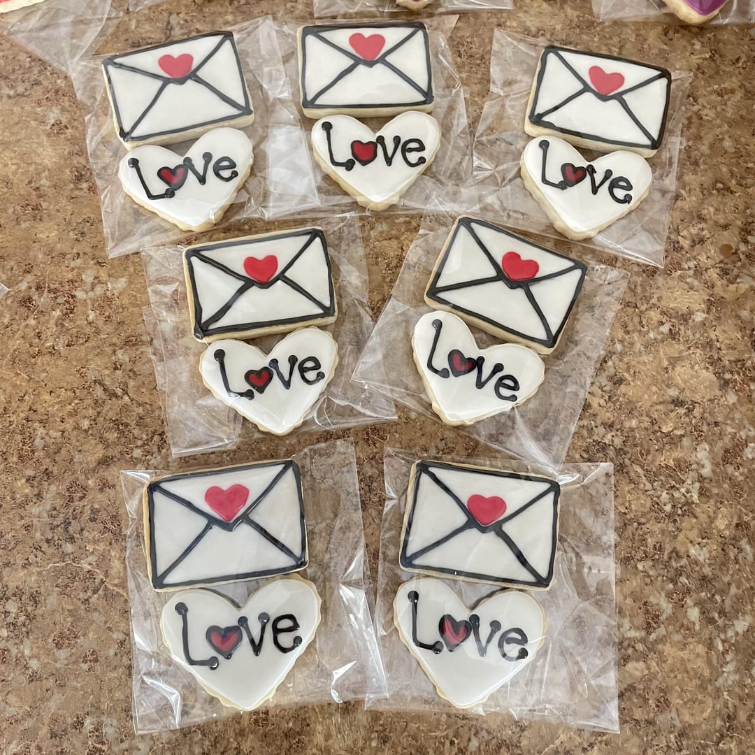 Had a lot of fun decorating the last couple of days. These are for my husband to bring to work (he’s a usps mail carrier…hence the envelopes). Happy Valentine’s Day, everyone !