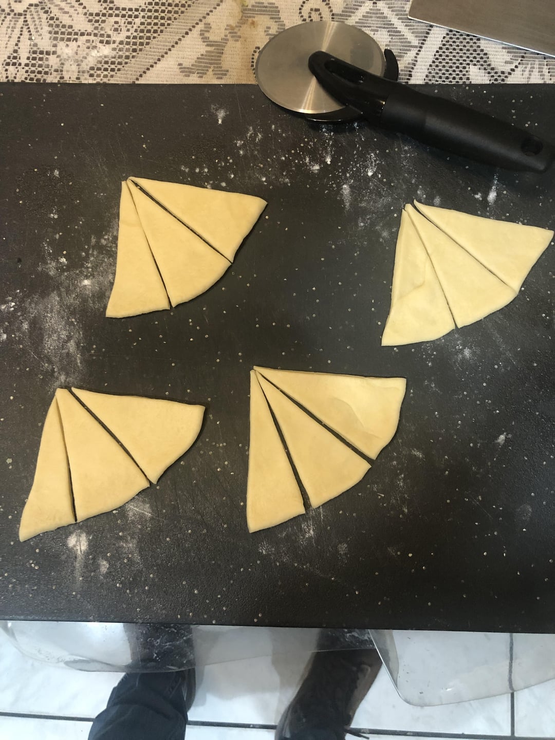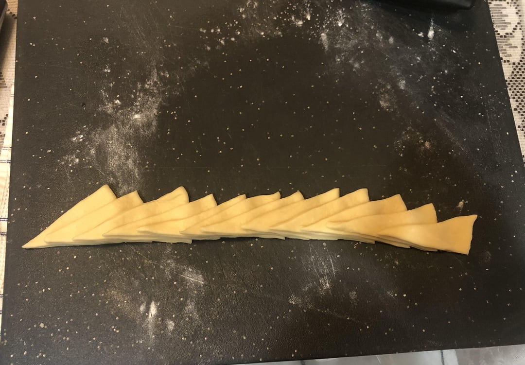 Step 6. Roll from leftmost triangle keeping the bottom even.