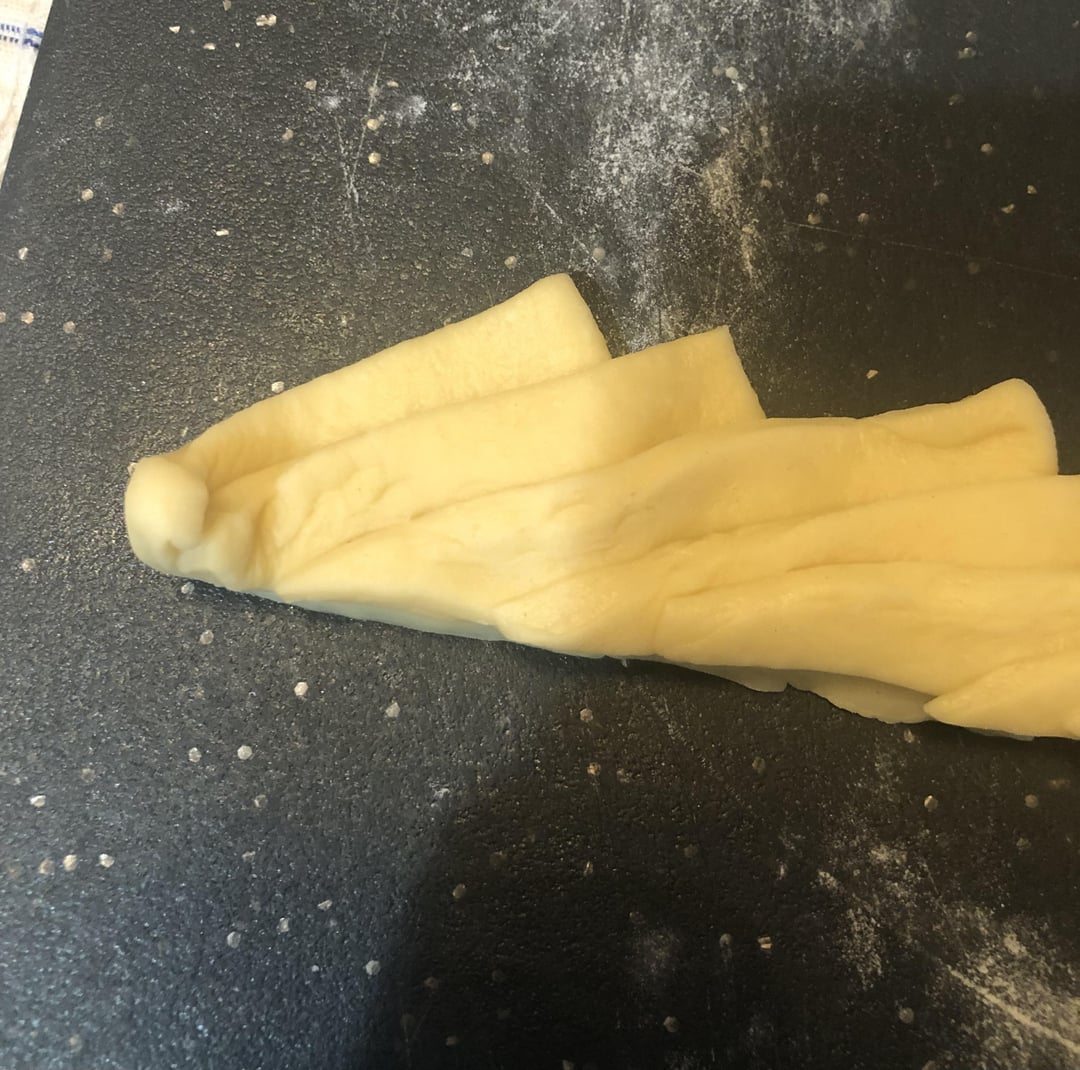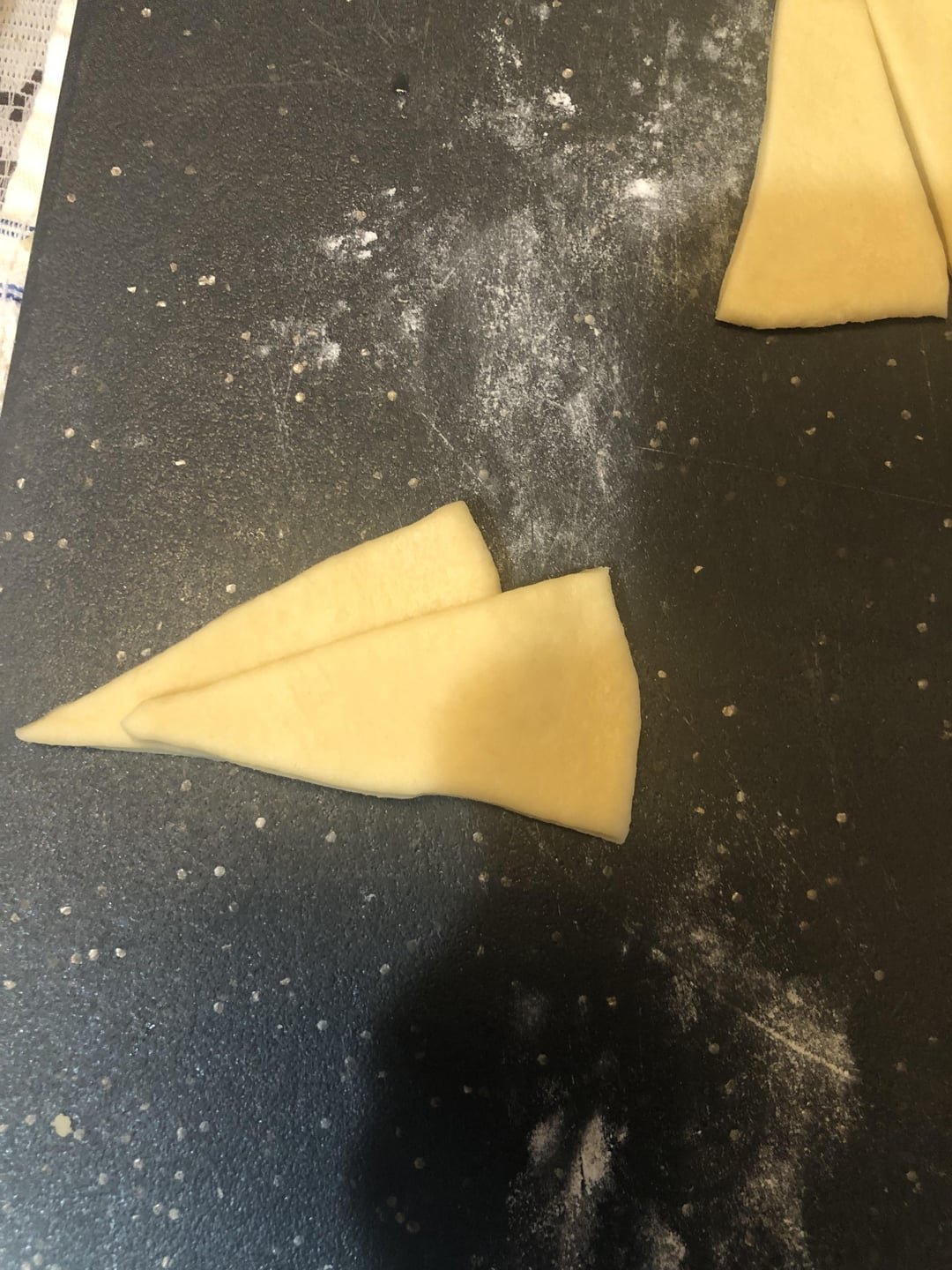 Step 5. Pinch the bottoms of the triangles together to prevent unraveling.