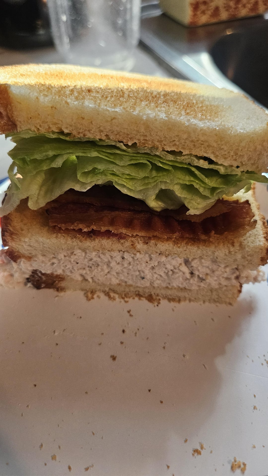 Had some left over rotisserie chicken so cut up some pieces and threw it in the Ninja Bullet to grind it up. A little mayo, salt, pepper, garlic powder, onion powder and some parsley on toast with fresh lettuce and crisp bacon. I don't like tomatoes so I skipped that. This was the result. 👌👌