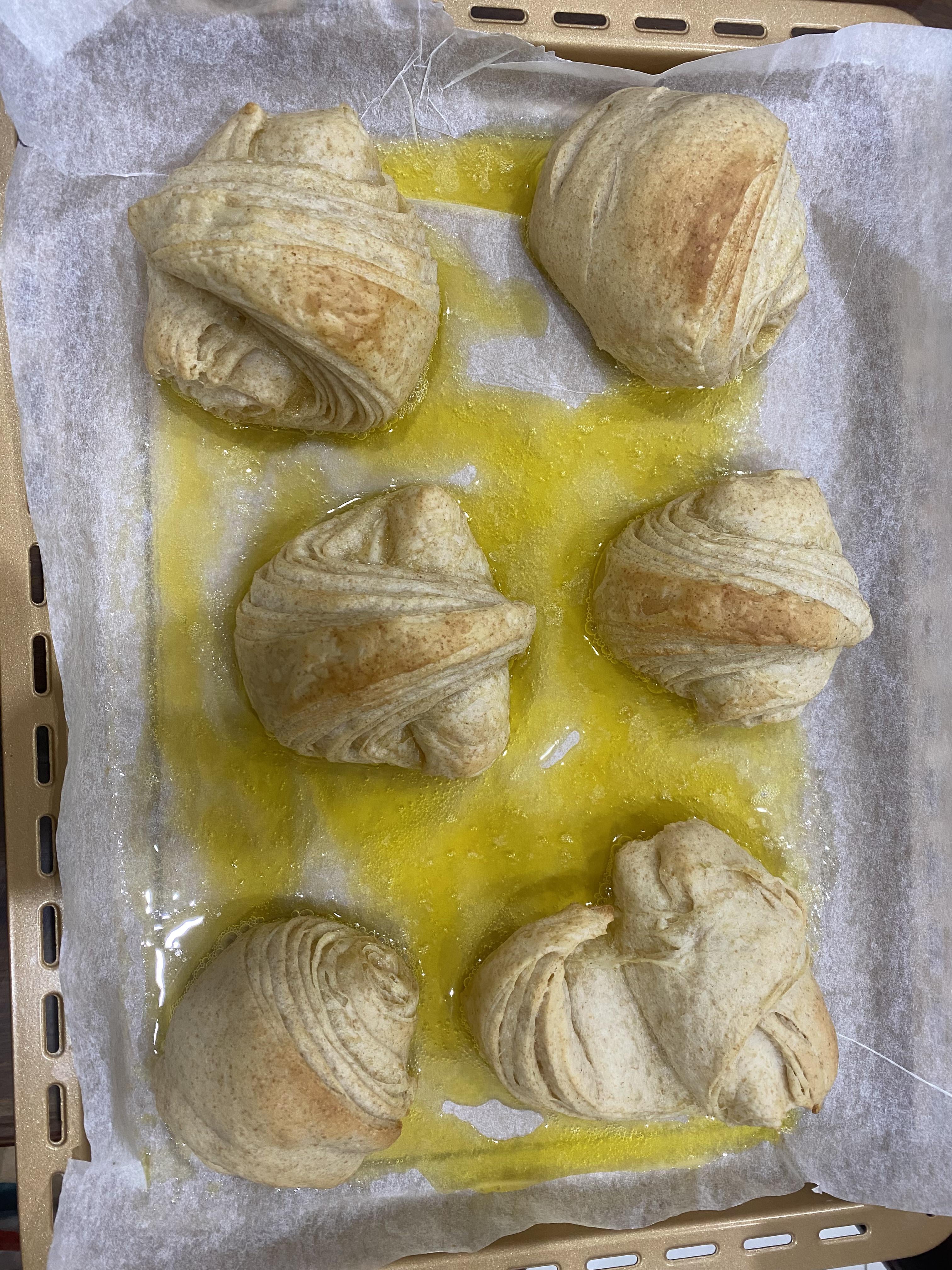 Just want to share my first (failed) attempt ever at the finicky croissant. Itโ€™s so bad that Iโ€™m laughing out loud in the kitchen.