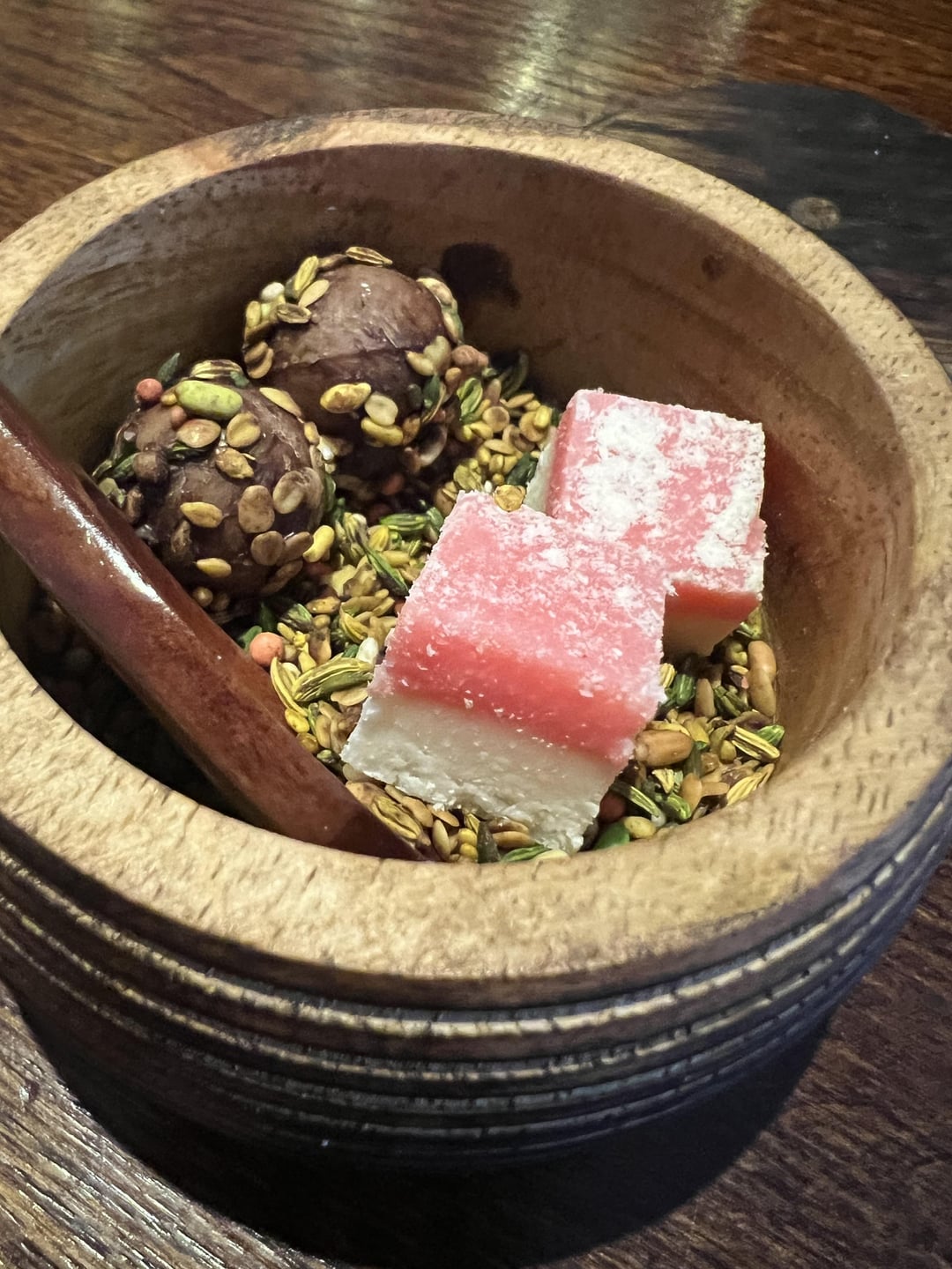 Core by Clare*** – the chorus of greetings on entry left me feeling excited that I had walked into an episode of the Bear. The space is both warm and cold, traditional, formal and a little surreal. Although service was mostly flawless, we did get a bit of attitude for asking to chill down our champagne, even after caveating we know it isn’t the done thing. We enjoyed the 2018 Egly-Ouriet Grand Cru Brut instead of a pairing. High marks for the innovation and technical execution of the menu, definitely some inspired moments, but I didn’t feel the soul of the food. We ordered one of each so we could try everything. I did like the whimsy of the wine gums at the finish. Unfortunately the most memorable part of the evening was a rowdy table on the other side of the room that was so loud for the second half of our meal that I could barely hear myself speaking. That was a first for me. Still a good experience overall