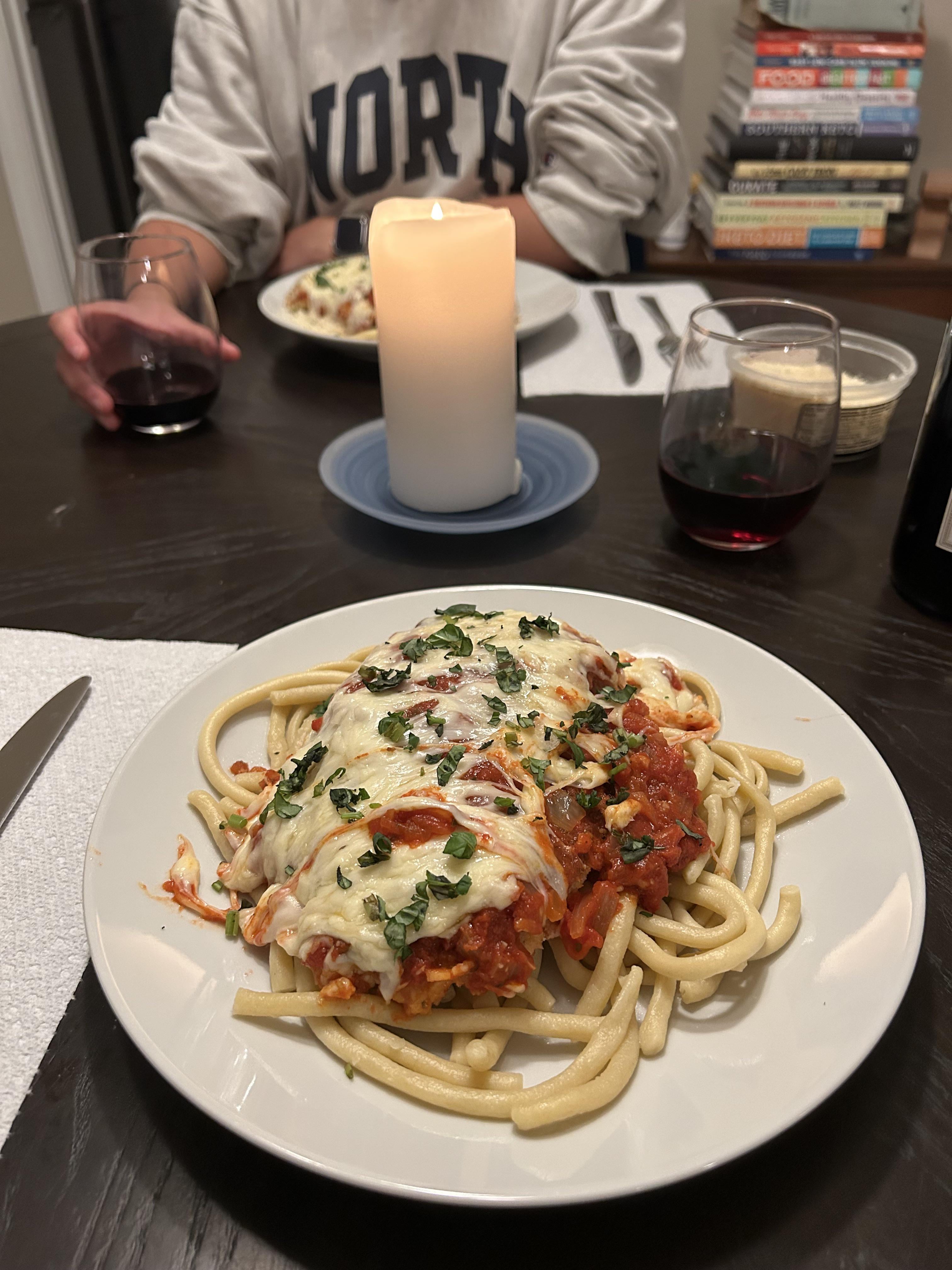 Chicken looks so yummy! That pasta is something else though.