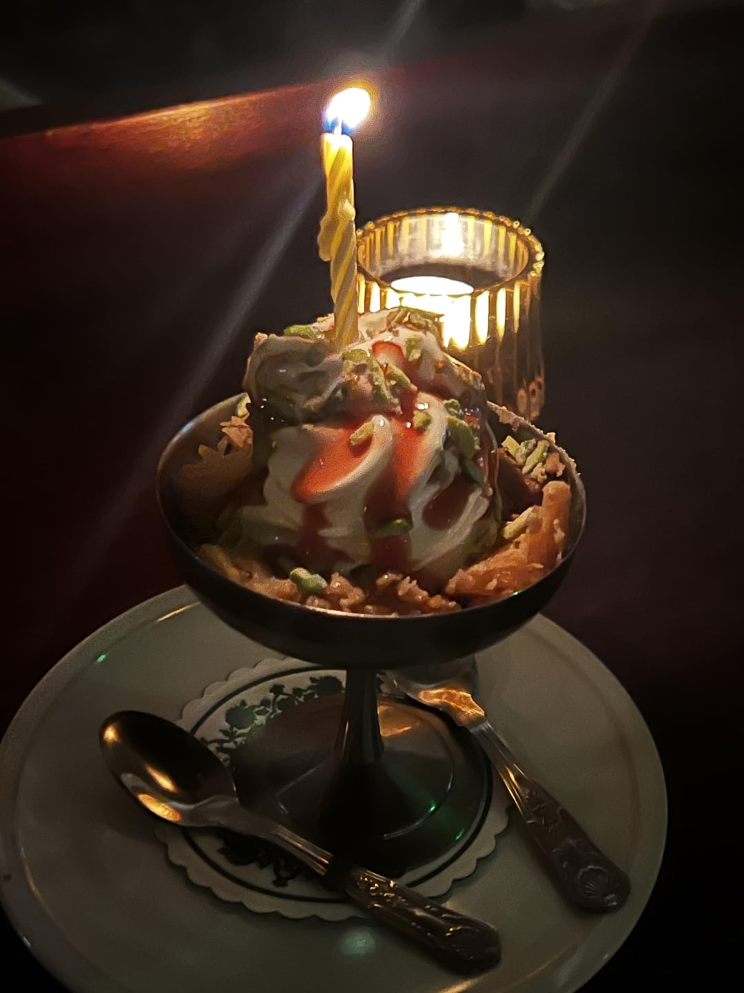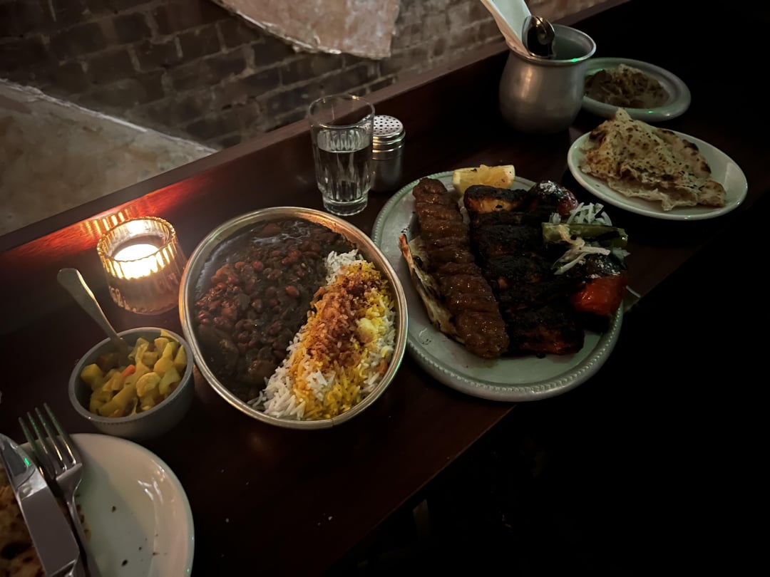 I had half of everything, minus the lamb stew, had like two table spoons of it. I had 3/4 of the sundae. I had the taftoon and hummus, the jujeh kebab tond, the koobideh kabab, ghormeh sabzi, and baklava ice cream sundae. Fasted the entire day so I let myself eat but idk if it was TOO much. I was stuffed though. The menu’s at the end!