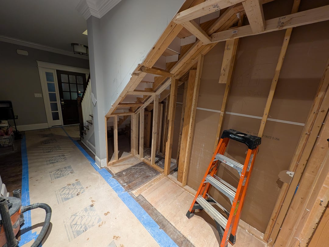 I've been allotted a generously sized portion of my future kitchen counter space for tea, coffee, bubbly water, and whatever else my heart desires so long as it fits this space under the stairs with the angled ceiling.