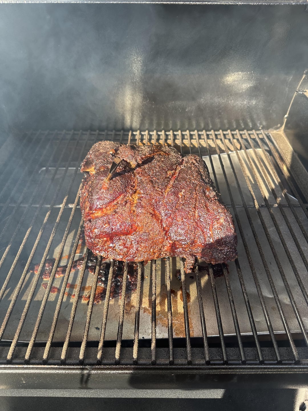 Seasoned with salt, pepper garlic and Traeger pork rub.