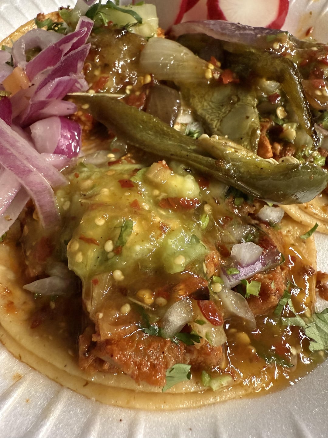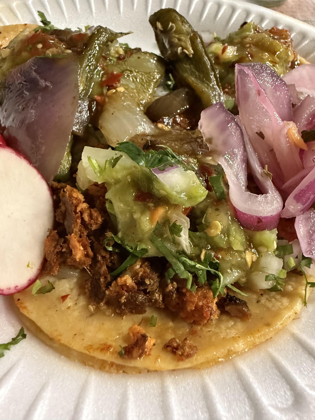 Chorizo, carne asada and al pastor. Top tier tacos – definitely in my top 5 in the Bay Area. The people that worked there were so nice. It is literally in someone’s backyard which was really cool.