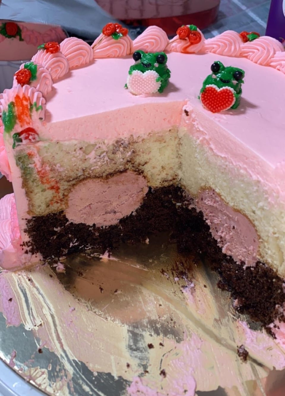 Just wanted to show off the cake I made for galentines day it’s so cute and it has heart shaped white raspberry ganache filling 🤭by Im_just_a_baby_ 21 Comments Sea-Swordfish1353 12 months ago Too cute!!! Love the frogs! fwvb 12 months ago this is magical Physical-Flatworm454 12 months ago Love the little frogs 🐸❤️ emunoodle 12 months ago The heart and the black and white on the inside is amazing! JustMediocreAtBest 12 months ago 🐸 💖🐸I love it! Round_Wolverine1113 12 months ago So cute! would love to know how you did the heart! catsmagic-3 12 months ago This is adorable! Due_Public84 12 months ago SO CUTE Moonfur_star 12 months ago This is so cool!!!! (As a cake decorator new to decorating, it is especially impressive). May I steal :3? PinAccomplished2376 12 months ago Literally one of the cutest cakes I’ve ever seen lol! tamamamma 12 months ago This is perfect 😍 wellhello850 12 months ago This is amazing. Shall I PM you my address for tasting confirmation? Spacelady1953 12 months ago Very pretty love the frogs Ok-Amphibian-8867 12 months ago Love the frogs and the theme. Wish I could get a slice 😭 ImaginaryTooday6109 12 months ago OMG!!! That is so cute and clever!!! Well done!! 💖 LooneyLunaGirl 12 months ago SO cute!! 🐸 deliberatewellbeing 12 months ago wowwwww!!! how did you make that hear shaped center?!!!!… never mind … saw the explanation. love it! FootballMysterious90 12 months ago It’s the frogs with the cutest little hearts for me !!!! So so so cute. Ok_North_7224 12 months ago Literally gasped at the photo of the inside! Well done! Looks both cute and delicious! wetalonglegs 12 months ago You killed it!!! me_is_a_mandu 12 months ago That’s so cute, and the amount of cream is perfect, please send some my way 🫶🏻Write A CommentYou must be logged in to post a comment.