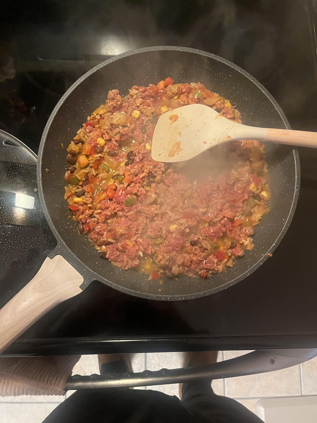 Great idea!! I thought I was the only one who cooked ground beef w garlic onions peppers spices and added refried beans to give it super flavor and stretch it out! I do my enchiladas like that wrap them in tortillas and drown them in enchilada sauce w cheese on top and olives!! lol I just love olives!! I know it’s not native but it gets my tasty buddies all excitable yum yum!!