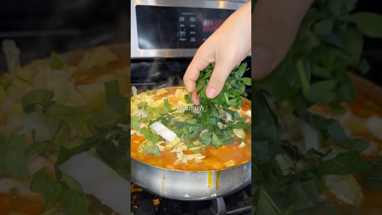 🥬 Final touch: Add chopped Napa cabbage & spinach, adjust seasoning, and finish with a splash of apple cider vinegar for balance.