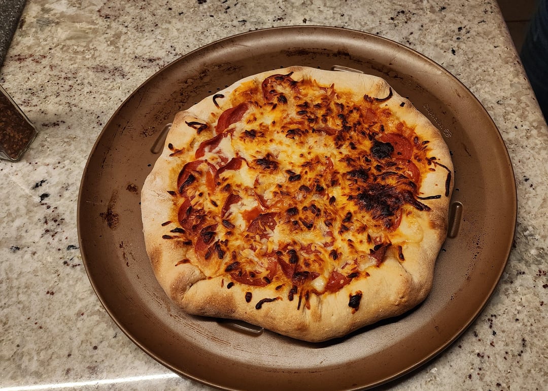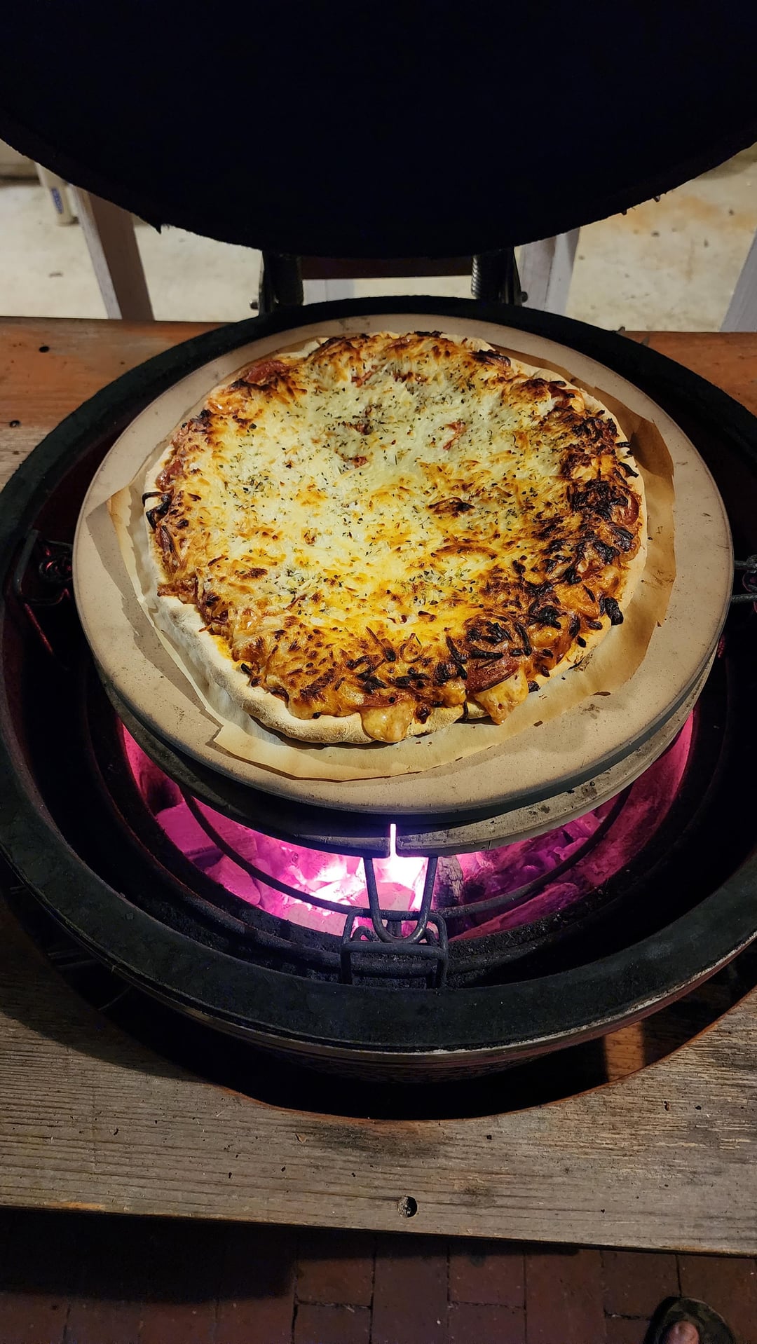 Had the pizza stone about 10 years and only used it once before when i first got it. Back then i was still learning the kj and didn't turn out well. Decided to take another shot at it tonight now that I'm a seasoned veteran of the kj and it really turned out great this time around. Crust was perfect. Next time i think i need to get the temp a little higher. I let it fall below 500 on the first one by forgetting to set the daisy wheel back open after it fell closed.
