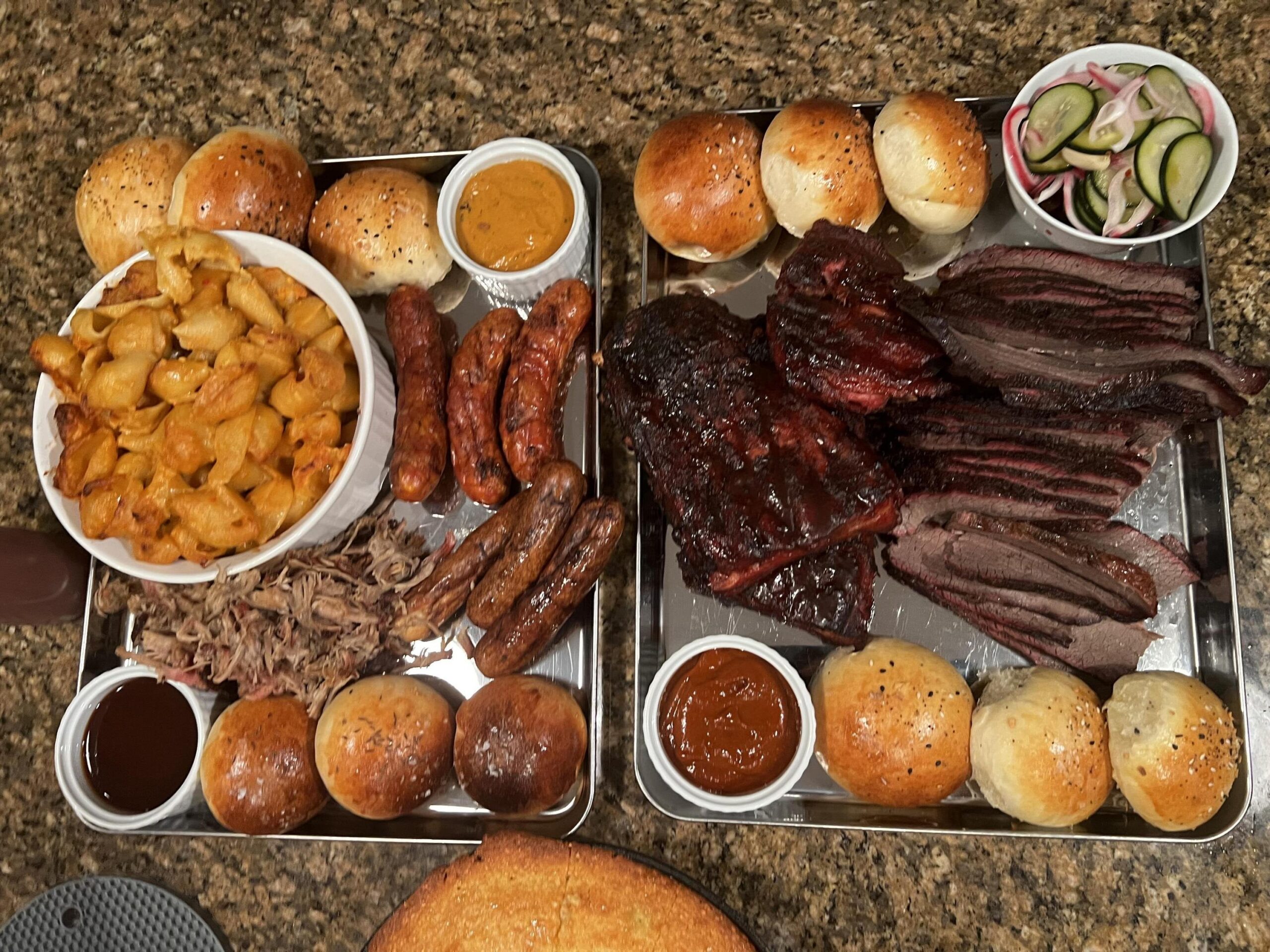 The look of that brisket and those wrinkly sausages is proof positive that the exorbitant prices of bbq places is deserved lol